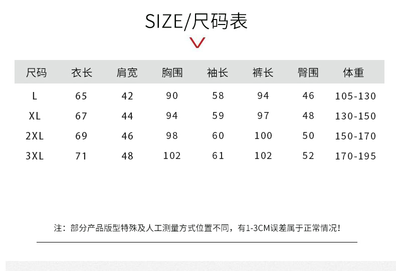 L (95-115斤),XL (115-135斤),2XL (135-155斤),3XL (155-180斤)