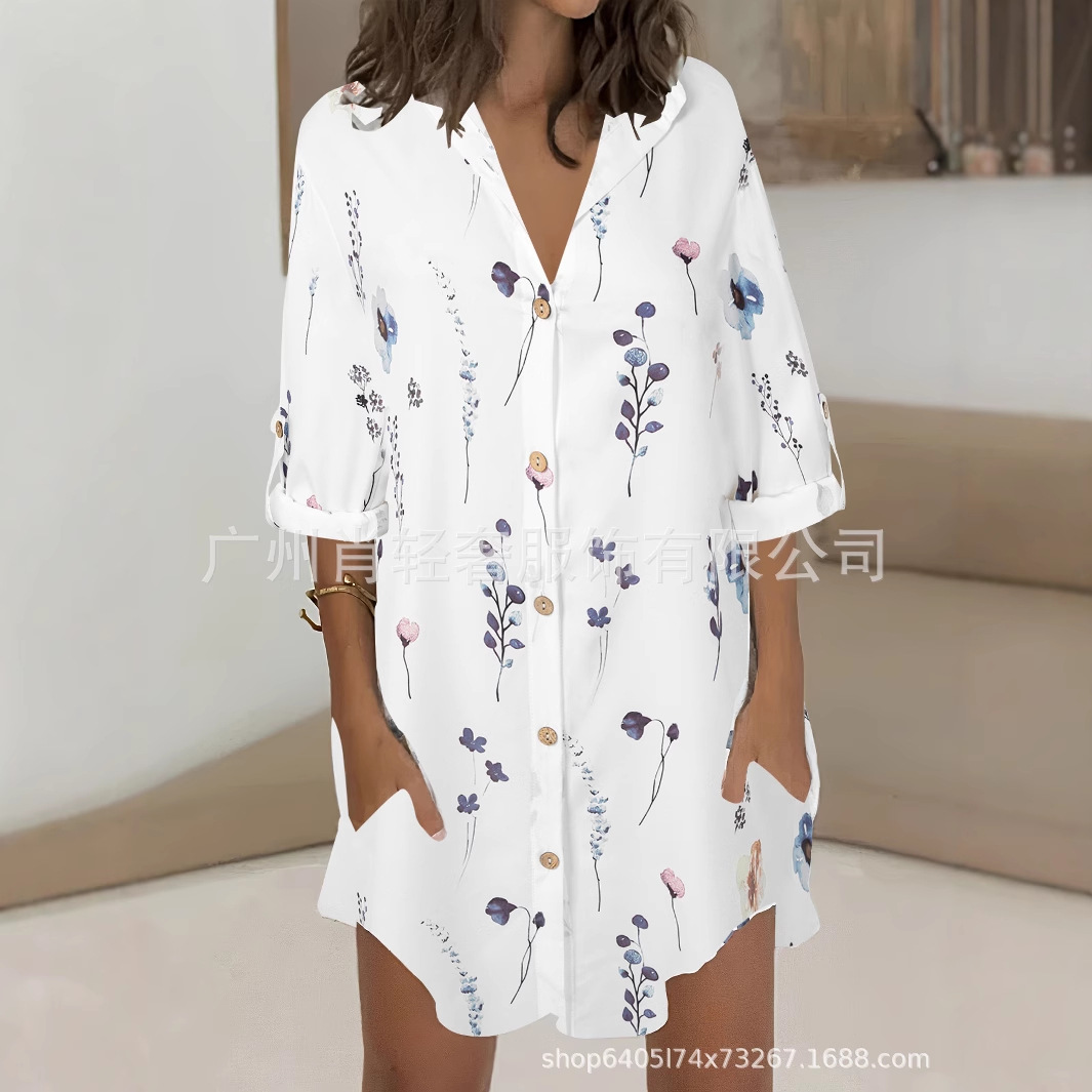 2026欧美跨境春夏新款女式v领印花连衣裙宽松舒适时尚显瘦女装