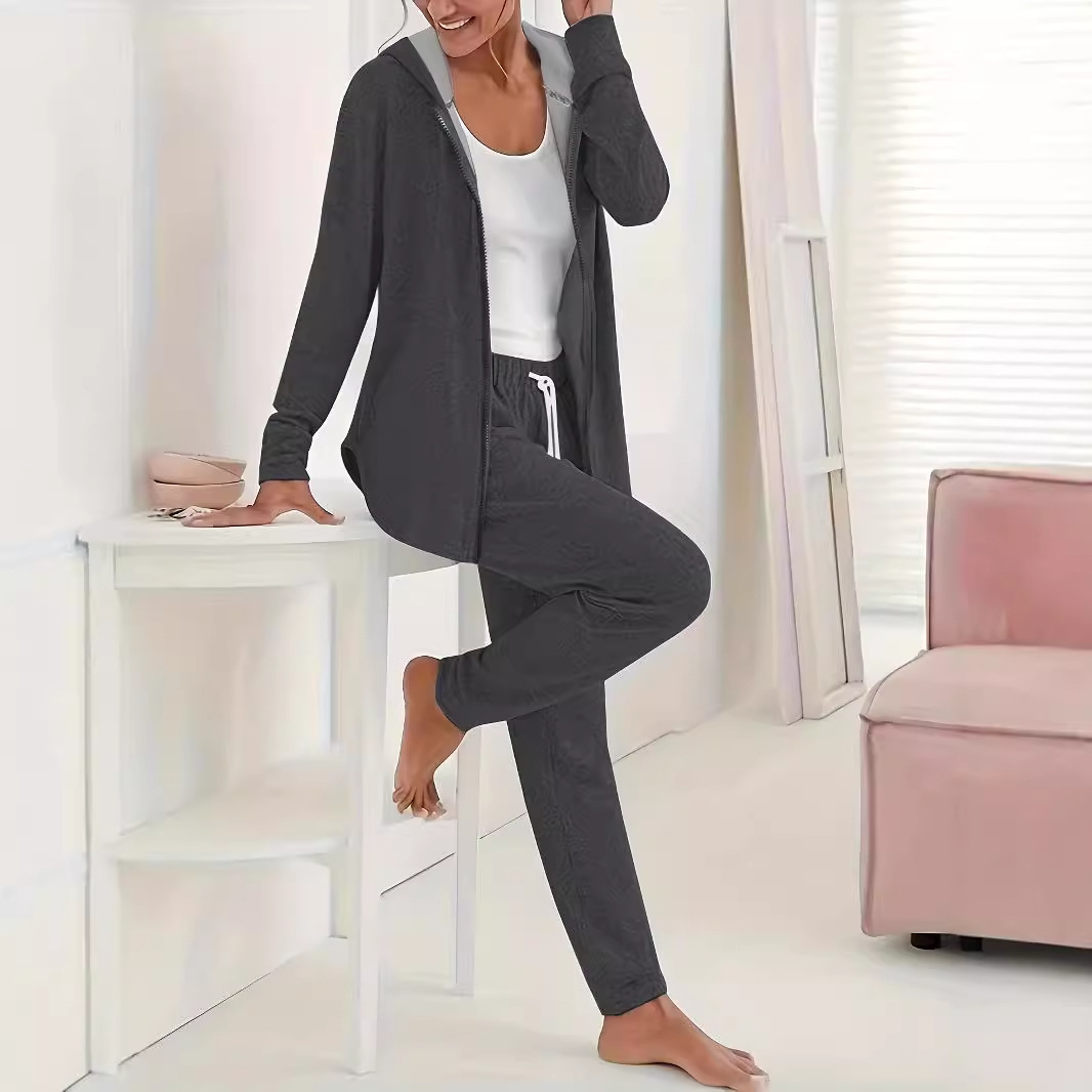 欧米の外国貿易のカジュアルなゆったりしたファスナーと帽子の軽いコートのズボンセット (2セット)
