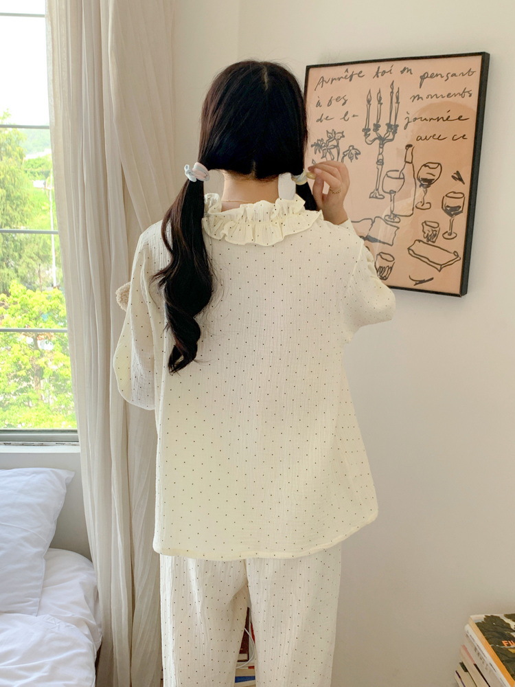 韓国ins女性春秋新商品韓国版甘い人形襟かわいい波点家庭服パジャマセット卸売り