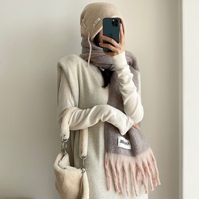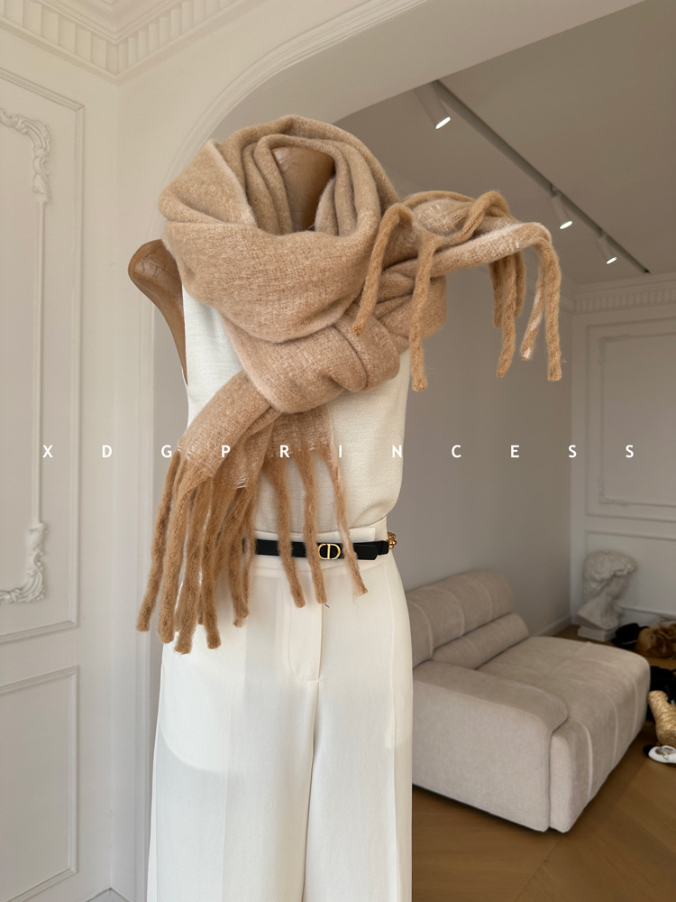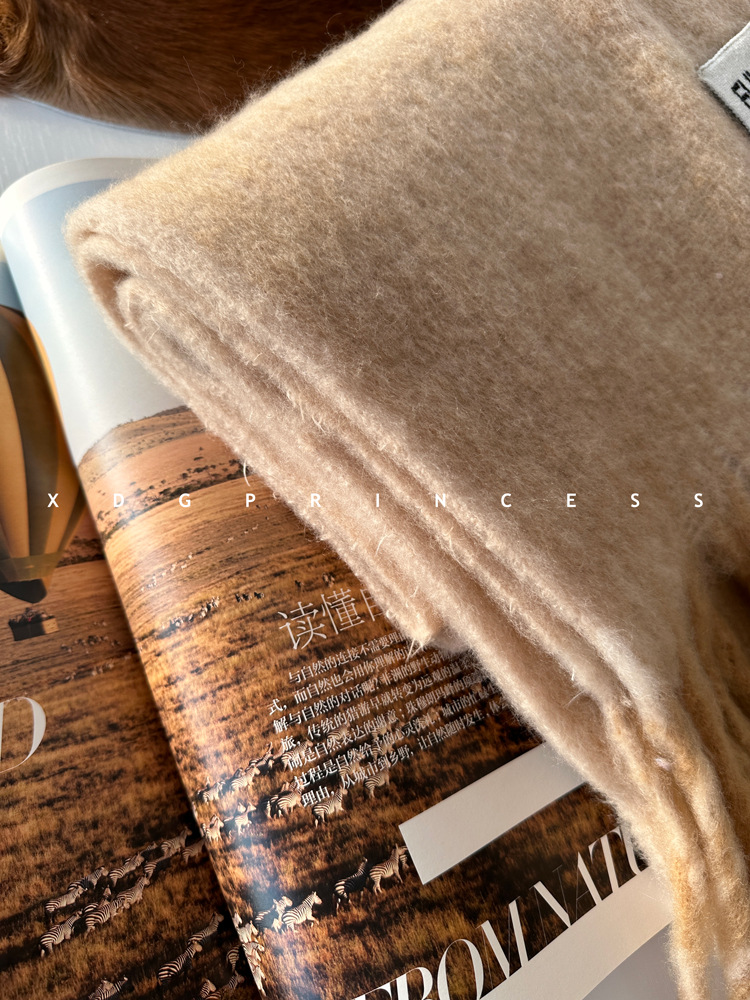 韩国订单!流苏款羊毛混纺韩系围巾女高级感百搭软糯披肩围脖两用