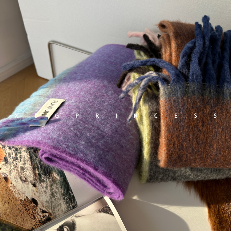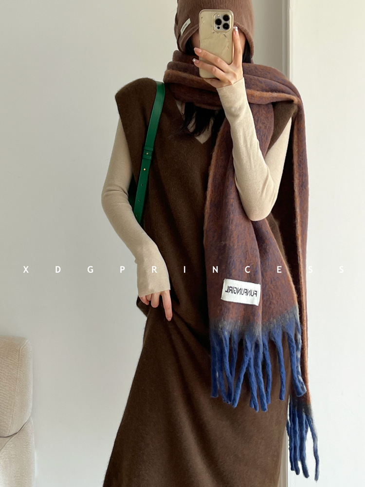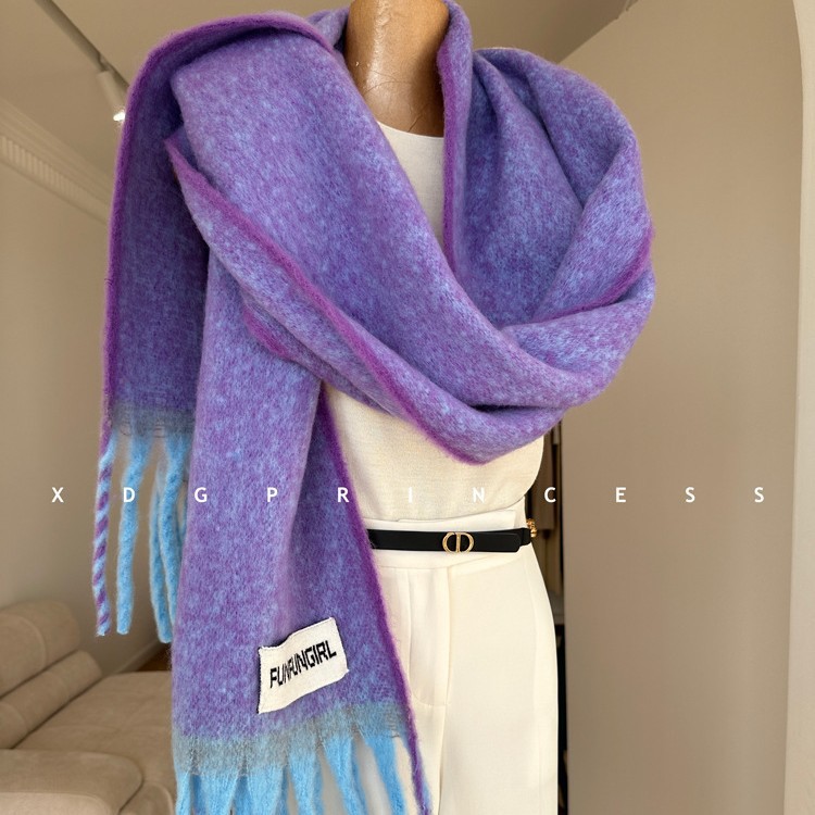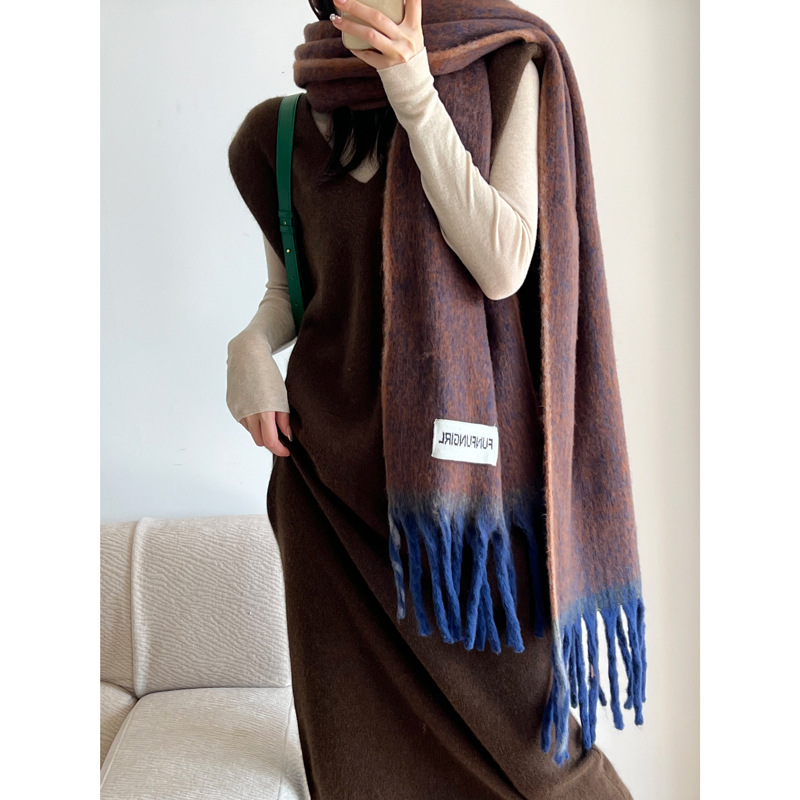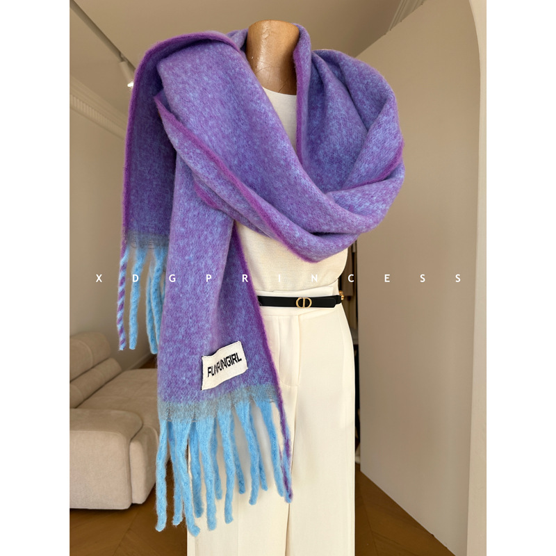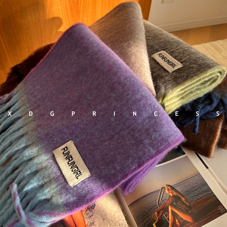 出口欧美~今年敲流行!马海毛渐变围巾披肩 保暖加厚流苏围脖女