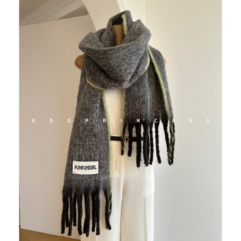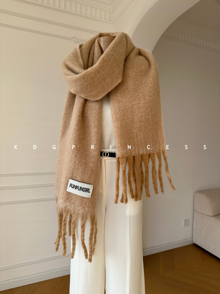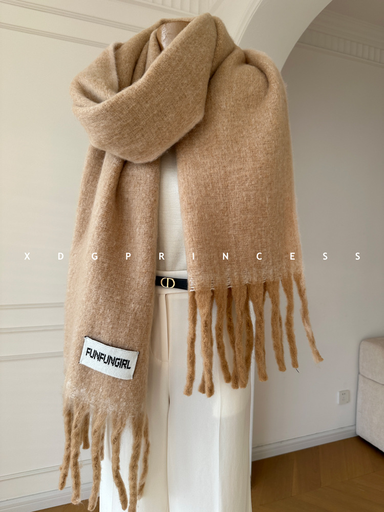 韩国订单2025新款大流苏羊毛保暖加厚围巾冬季新款高品质围脖长披