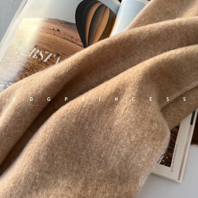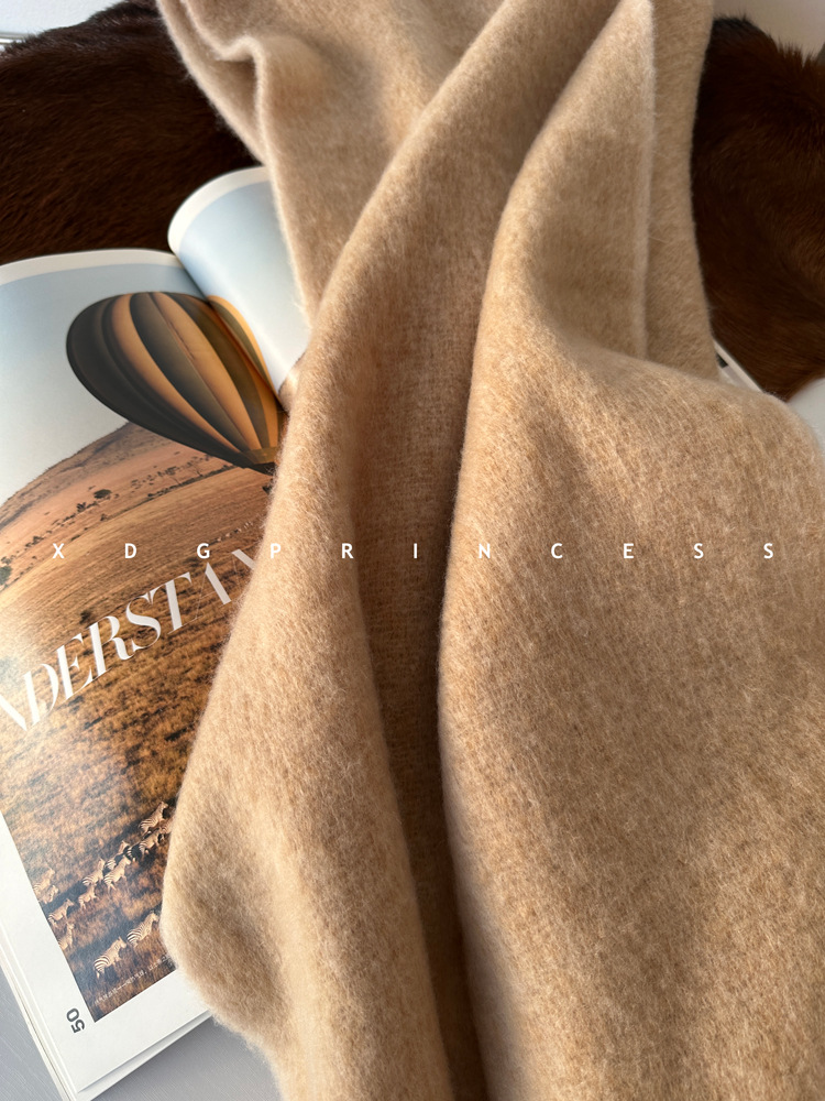 羊毛混纺材质小红书爆款大拉毛围巾女日韩系纯色羊毛皮标保暖披肩
