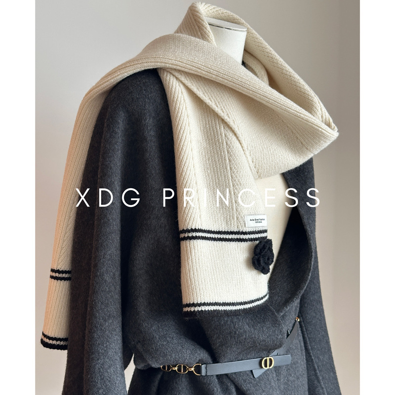 口碑款!秋冬韩系ins小香风山茶花针织围巾氛围感加厚羊毛围脖女