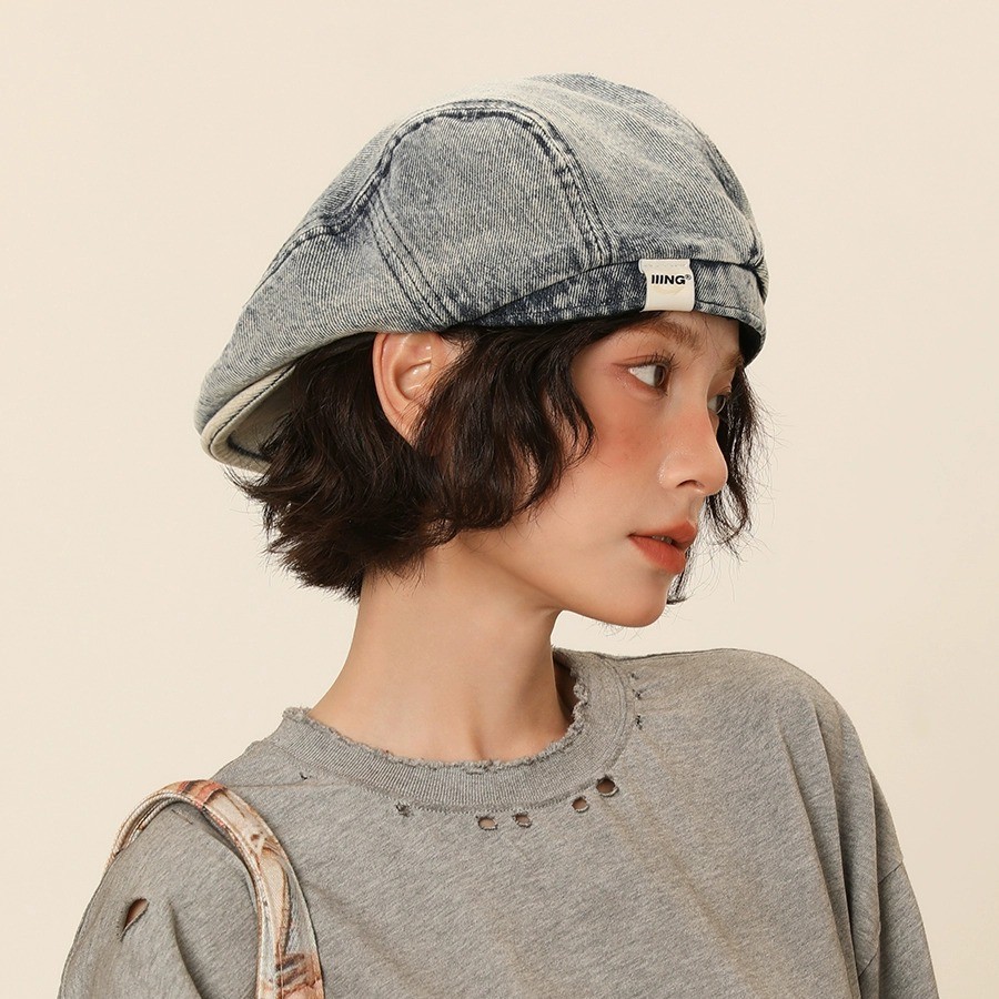 品質のレトロなデニムのベレー帽の女性の夏の百合の水洗いは古い大きい頭の周りを作って顔の小さい前進の帽子を現します。
