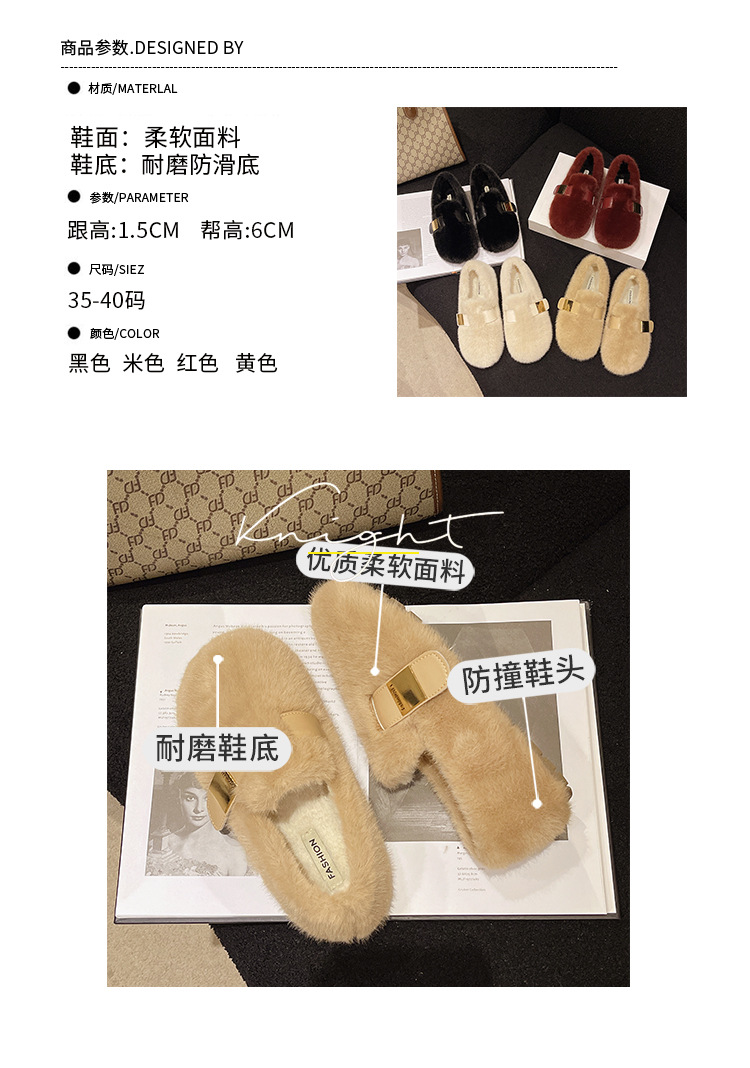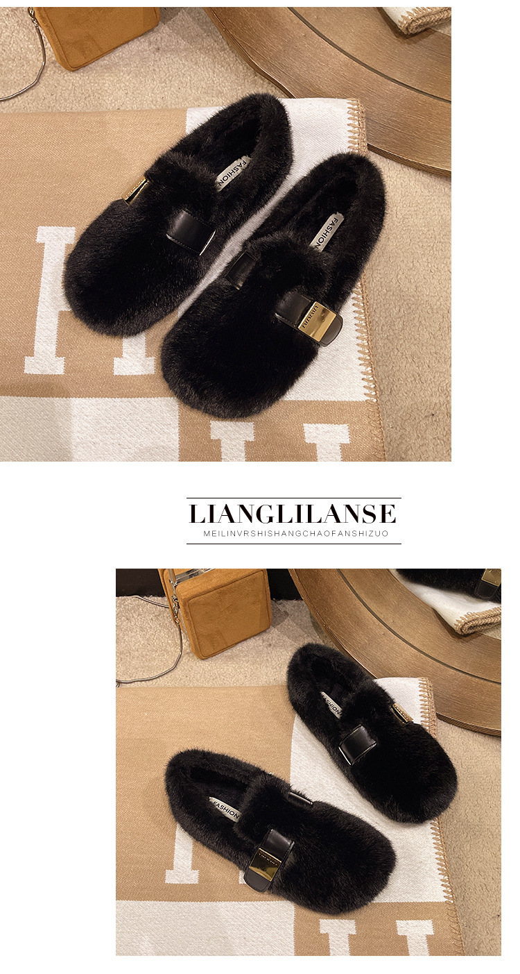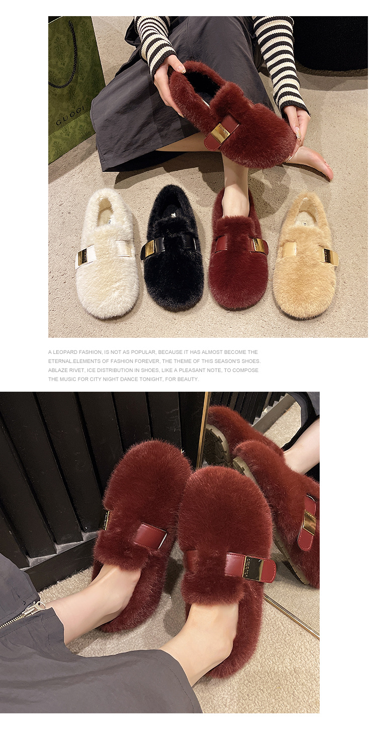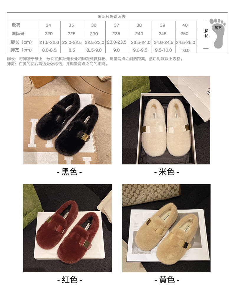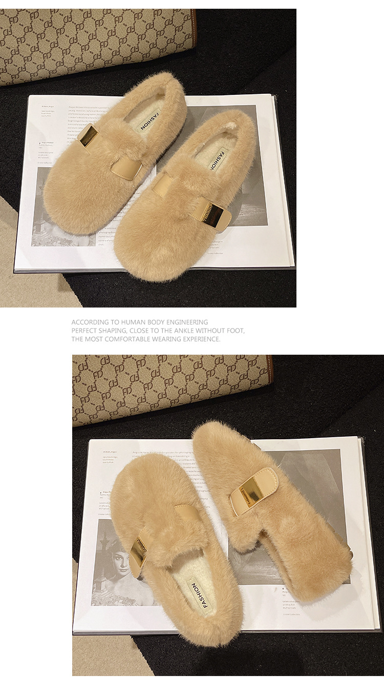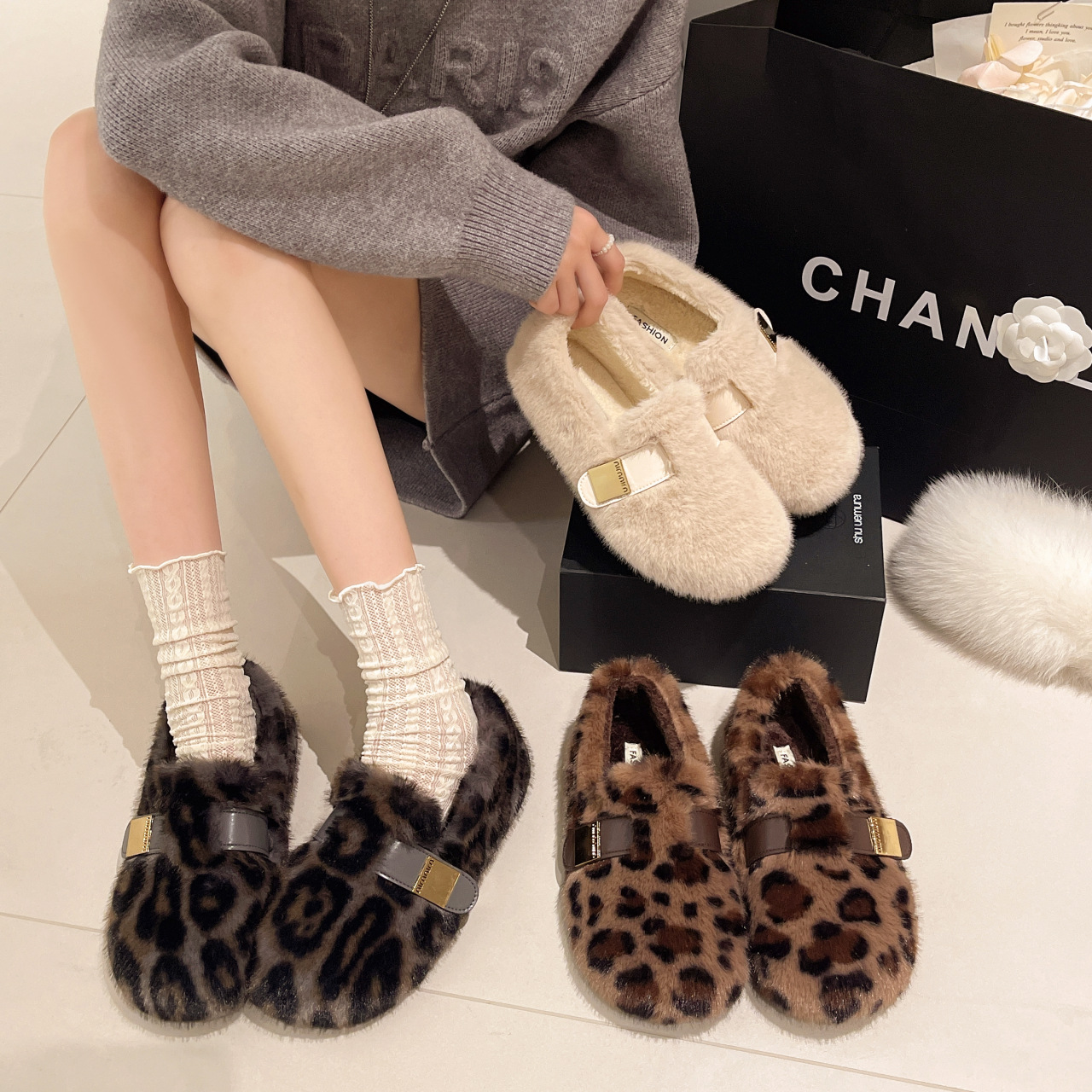 ワンステップで履けるフェアリースタイルの柔らかい底の裏起毛モコモコシューズ、女性用、2025年秋冬新作、フレンチスタイルの綿靴、トレンド