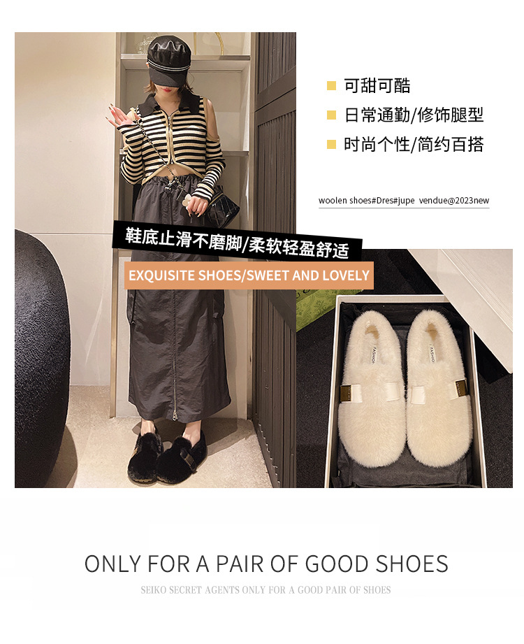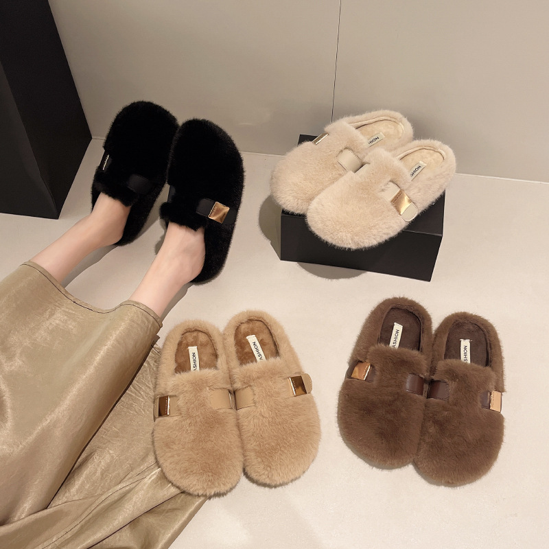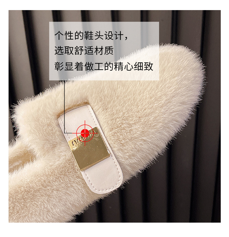 包头毛毛鞋女士新款韩版一字毛毛鞋女士休闲舒适软底网红毛绒女鞋