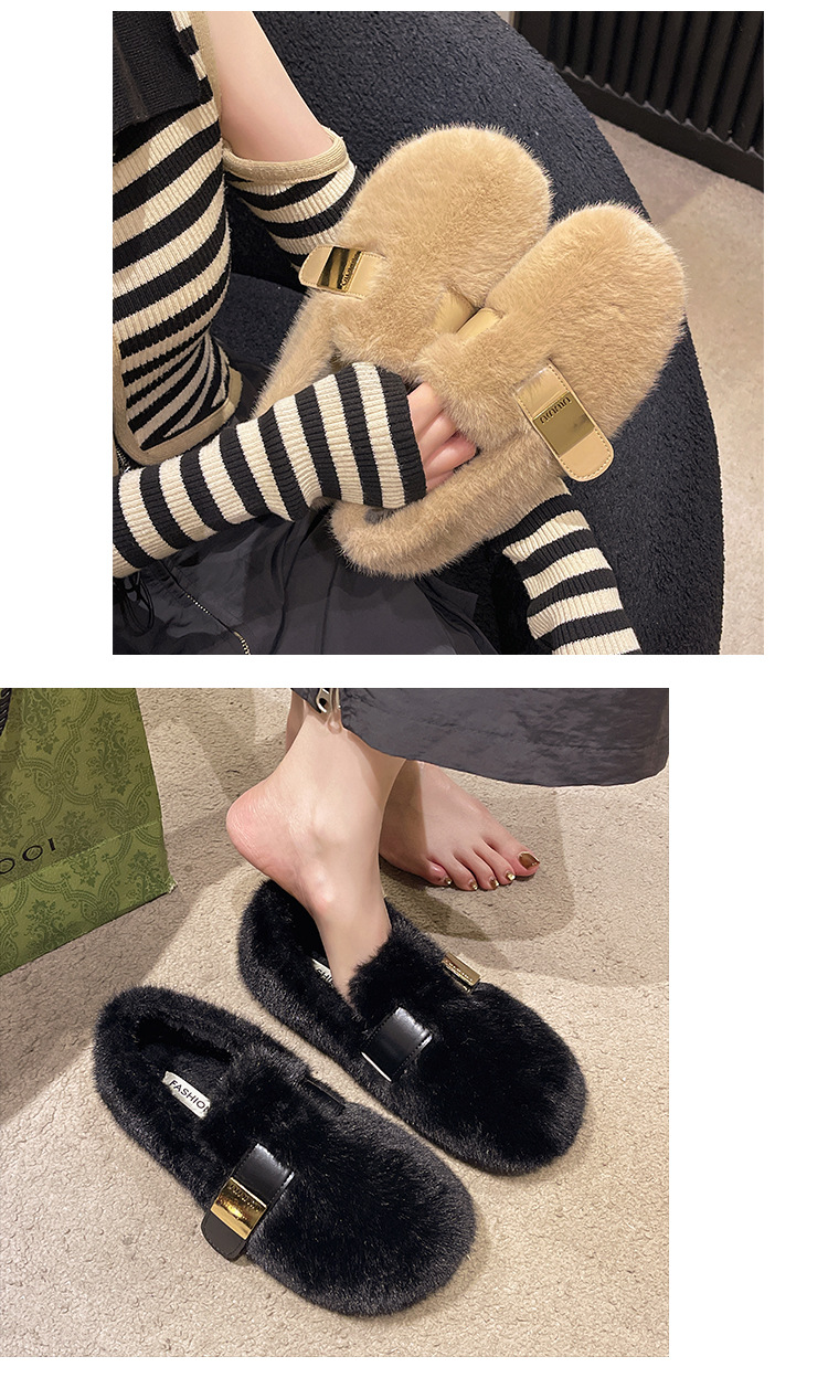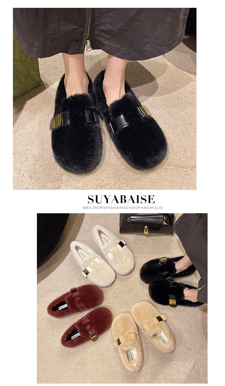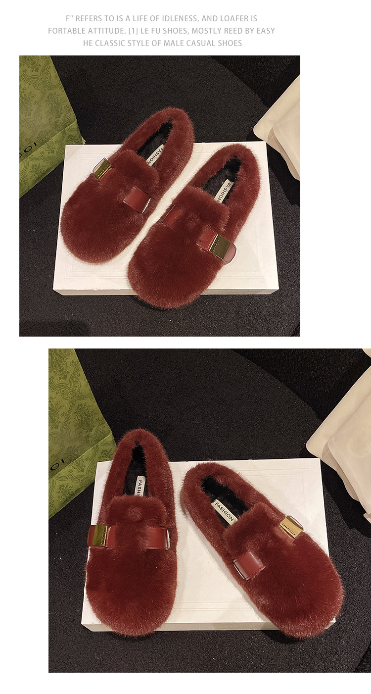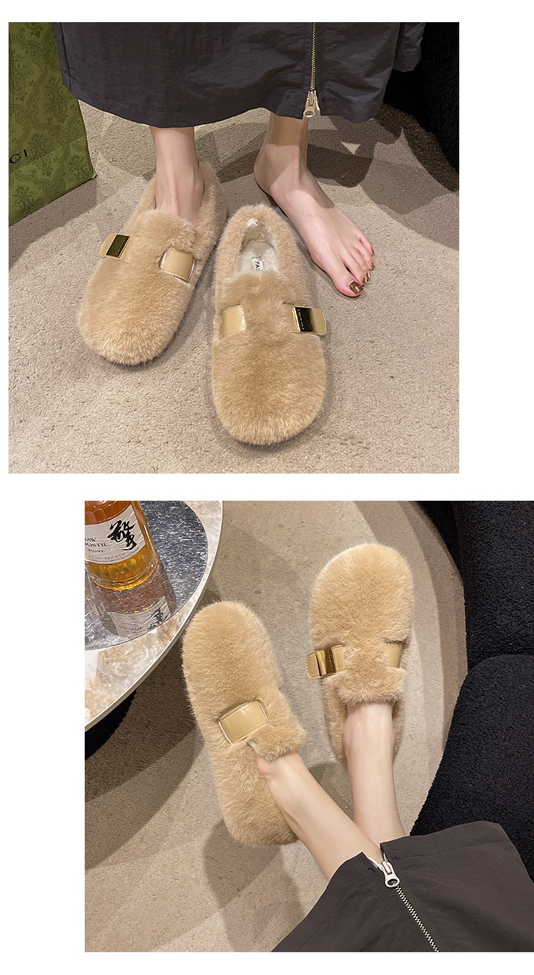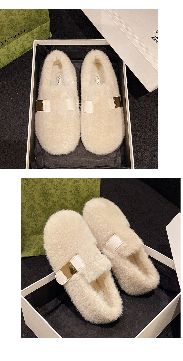 法式白色毛毛鞋女外穿2025新款秋冬一脚蹬高级感水貂毛绒豆豆棉鞋