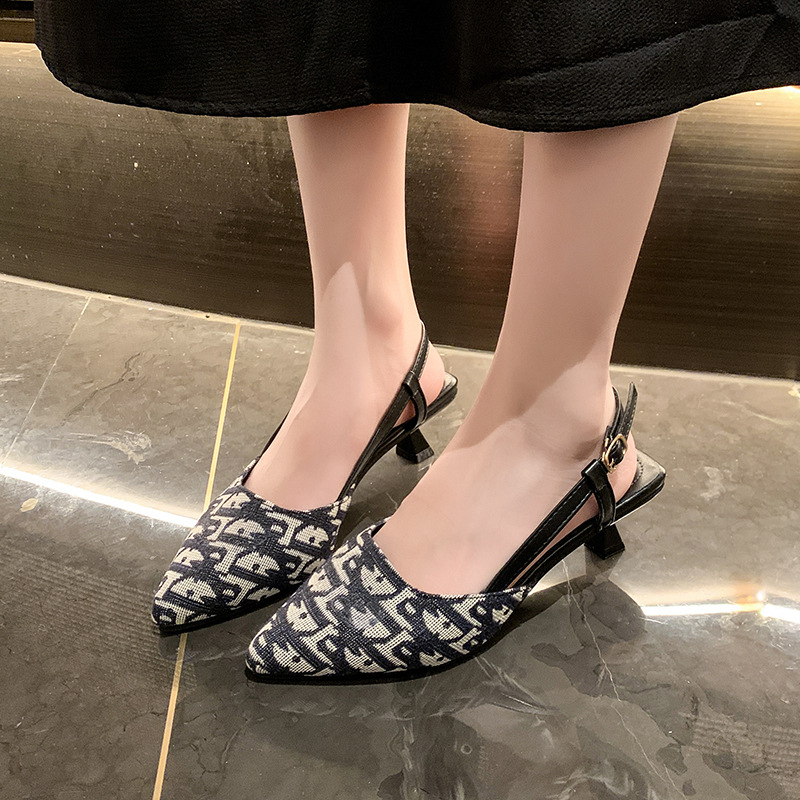 ニッチフレンチヒョウ柄ハイヒール包頭サンダル妖精の靴 2025 新作春夏スエードポインテッドトゥシューズ