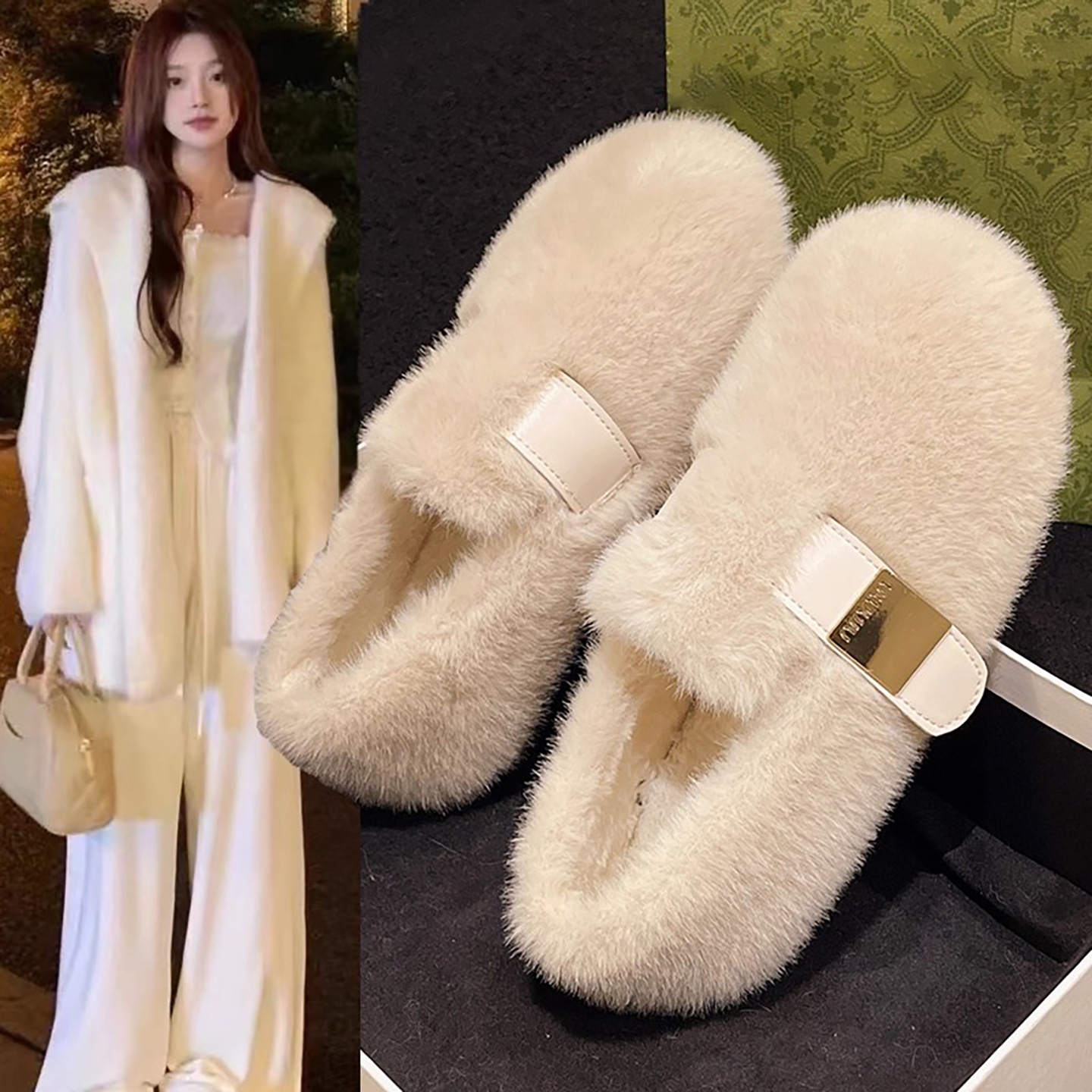 香港豆豆勃肯玛丽珍毛毛鞋女加绒保暖水貂毛秋冬季2025新款棉鞋