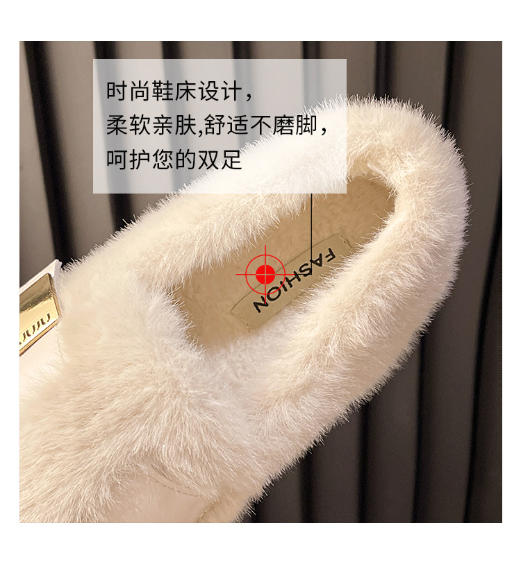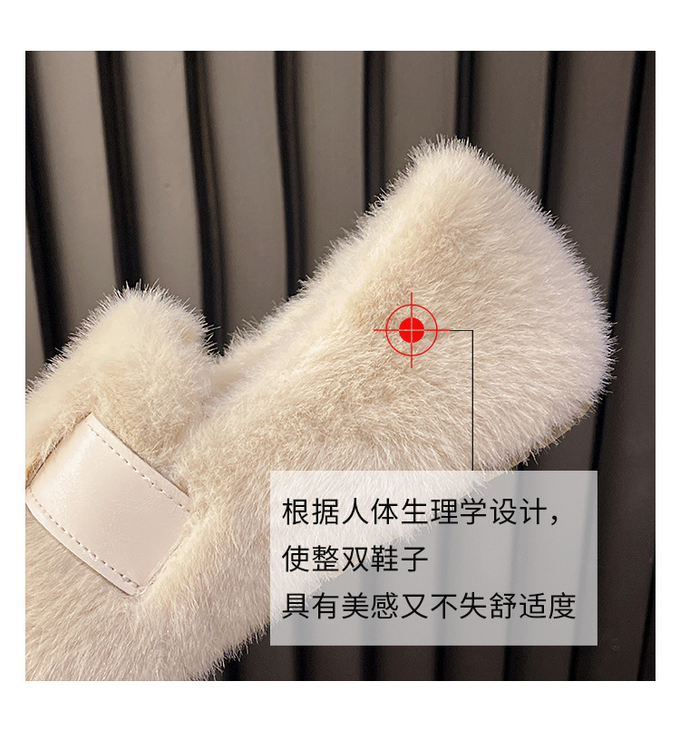 白色勃肯玛丽珍毛毛鞋女外穿加绒保暖水貂毛秋冬2025新款豆豆棉鞋