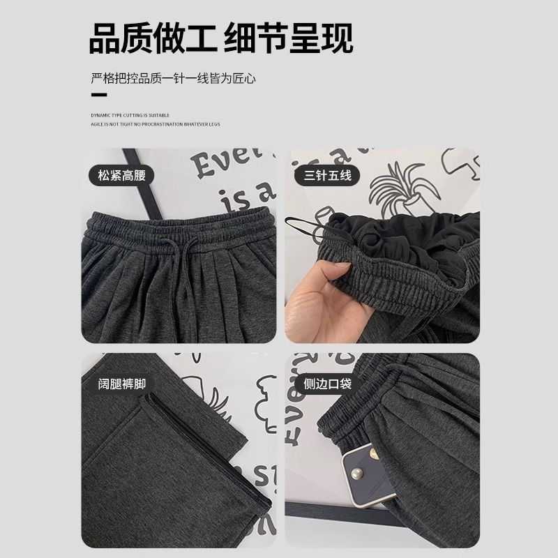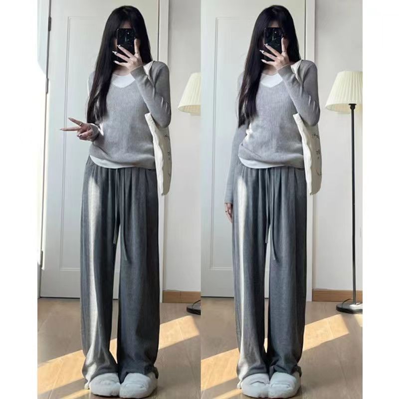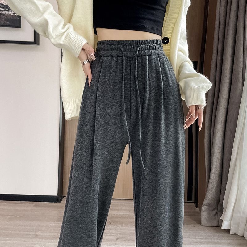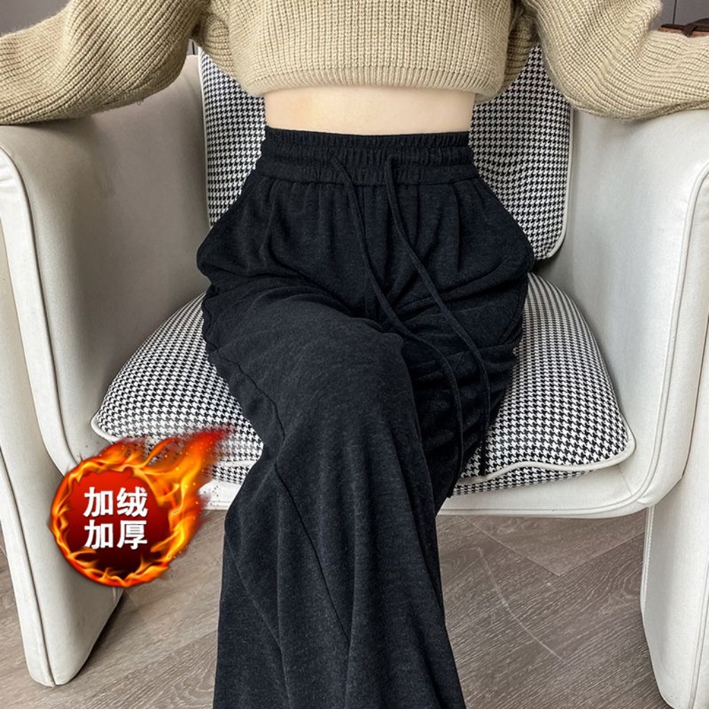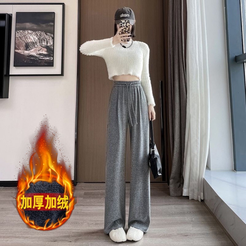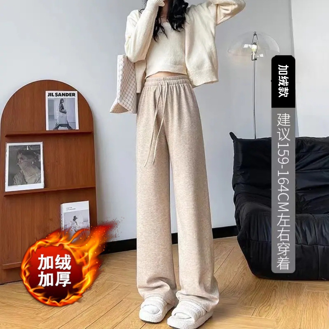 冬季加绒糯米裤女高腰垂感直筒拖地裤软糯羊绒加厚显瘦休闲阔腿裤