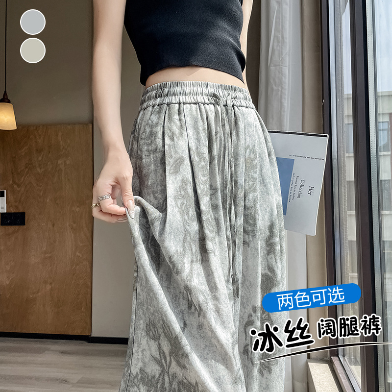蝶のもち米のズボンの女性の2025春夏の高腰の垂れ下がった感のカジュアルなプリントの広腿のズボンのゆったりしているネットの赤い爆発の山本のズボン