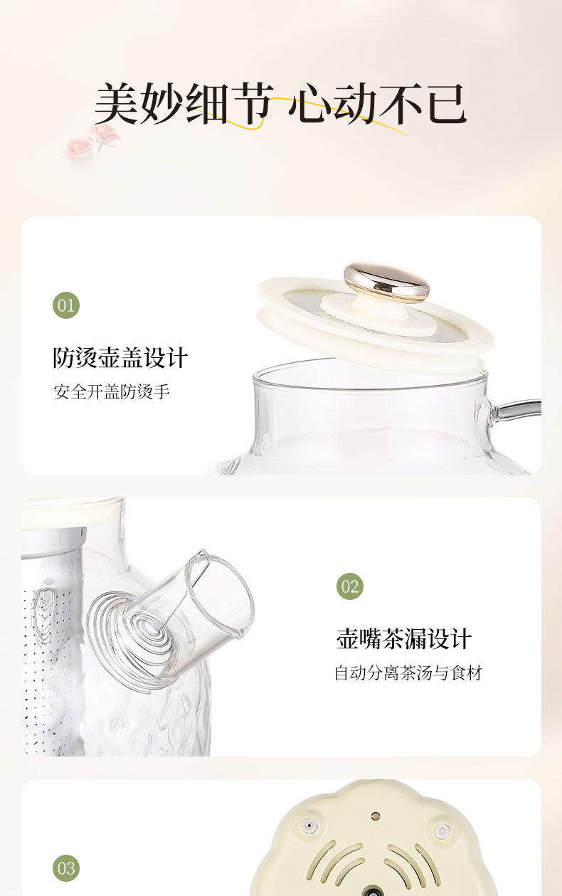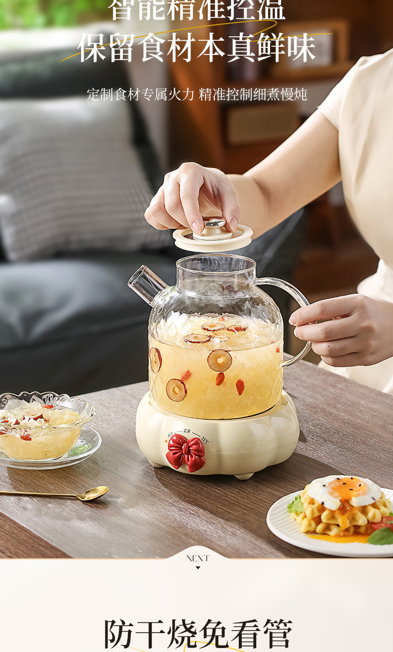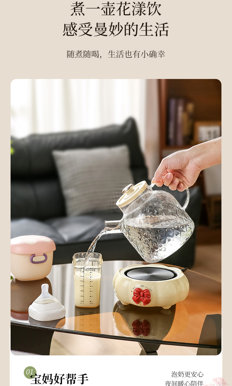 全自動健康ポット、家庭用ガラスボディ、ミニティーポット、シチューポット、一体型恒温ケトル、一人用小型