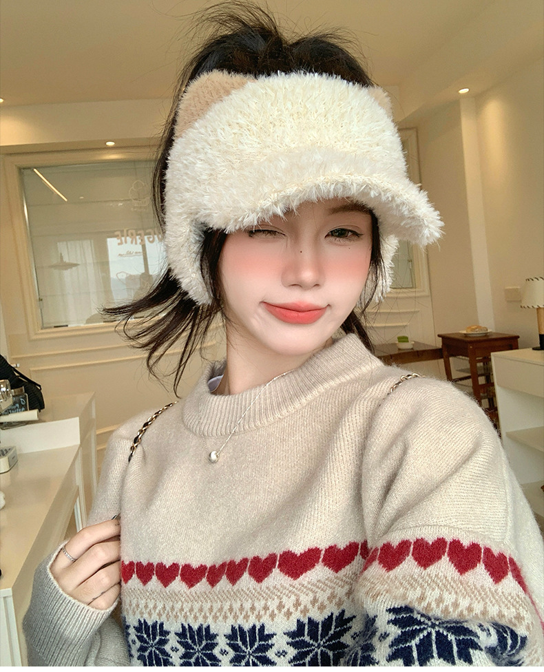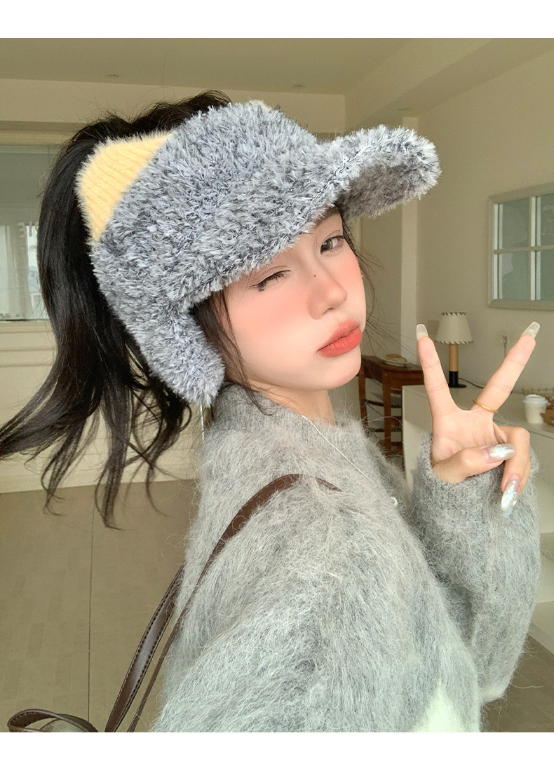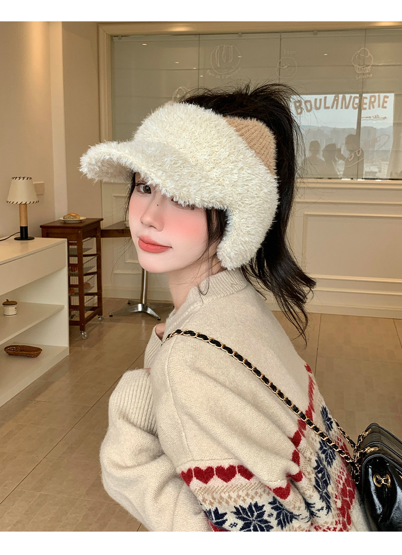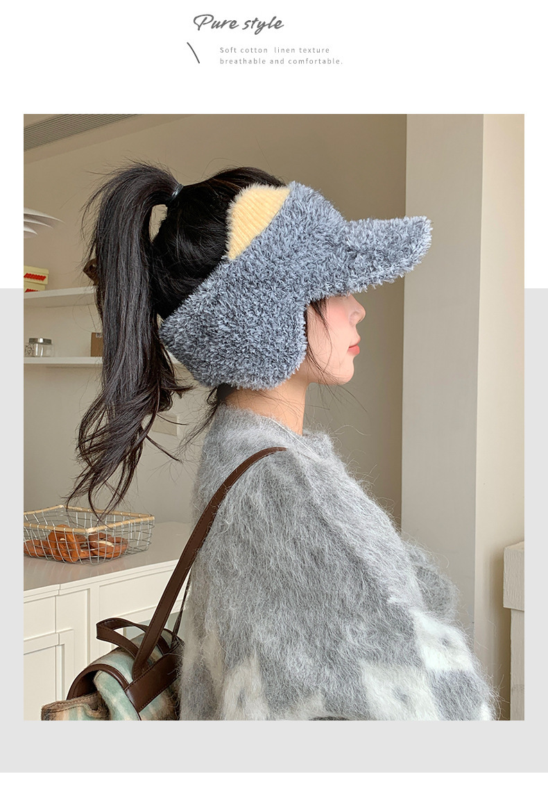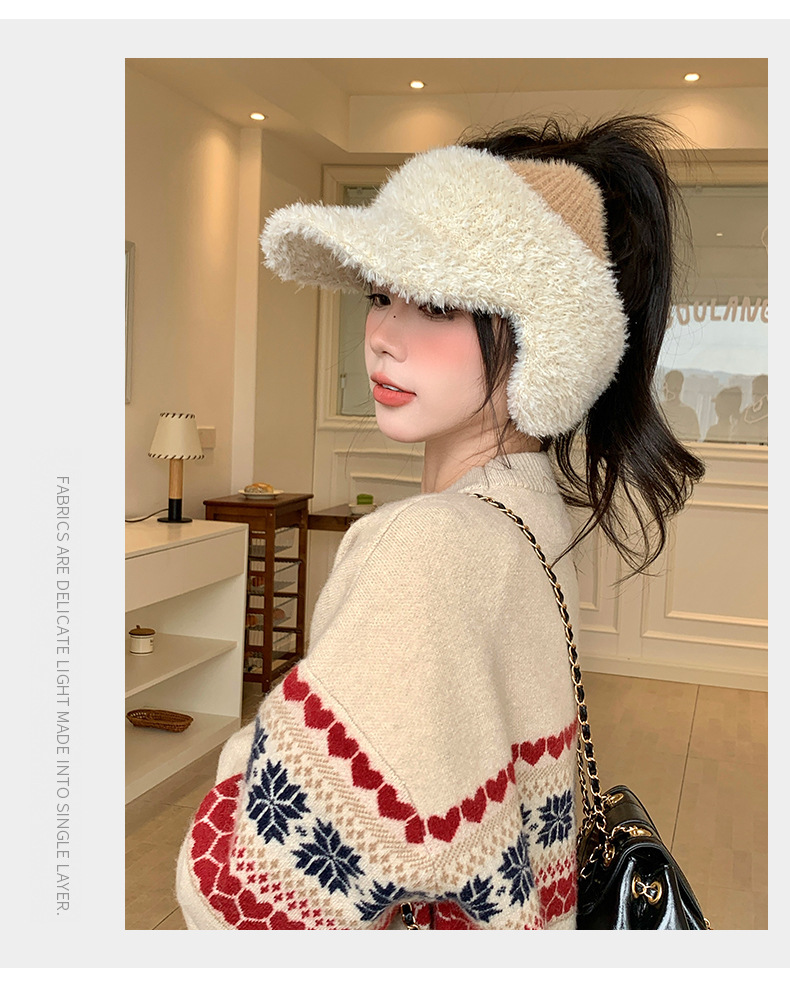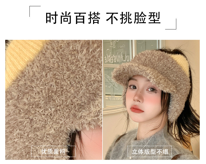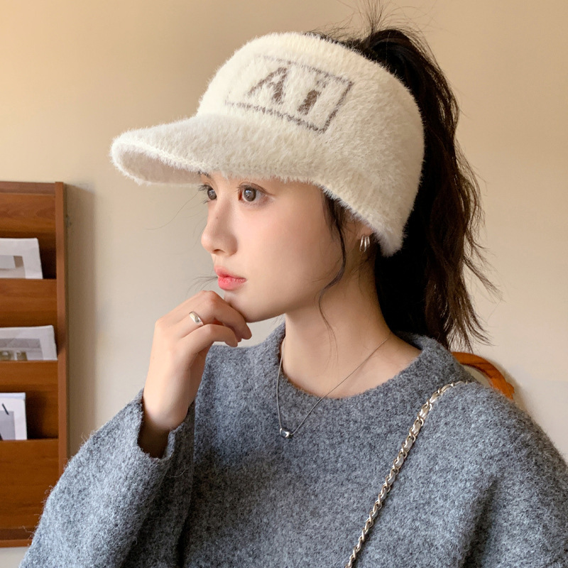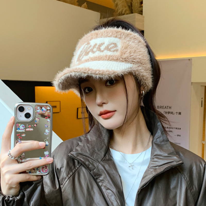 秋冬季韩版鸭舌空顶女帽毛绒空顶帽骑行防寒保暖百搭休闲毛线帽