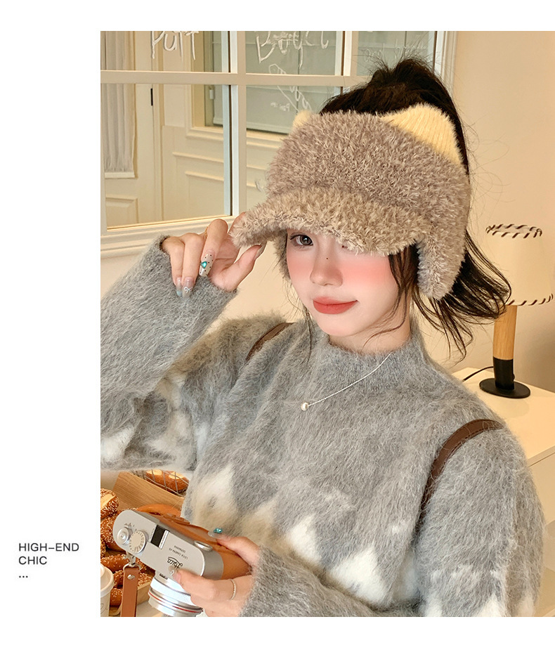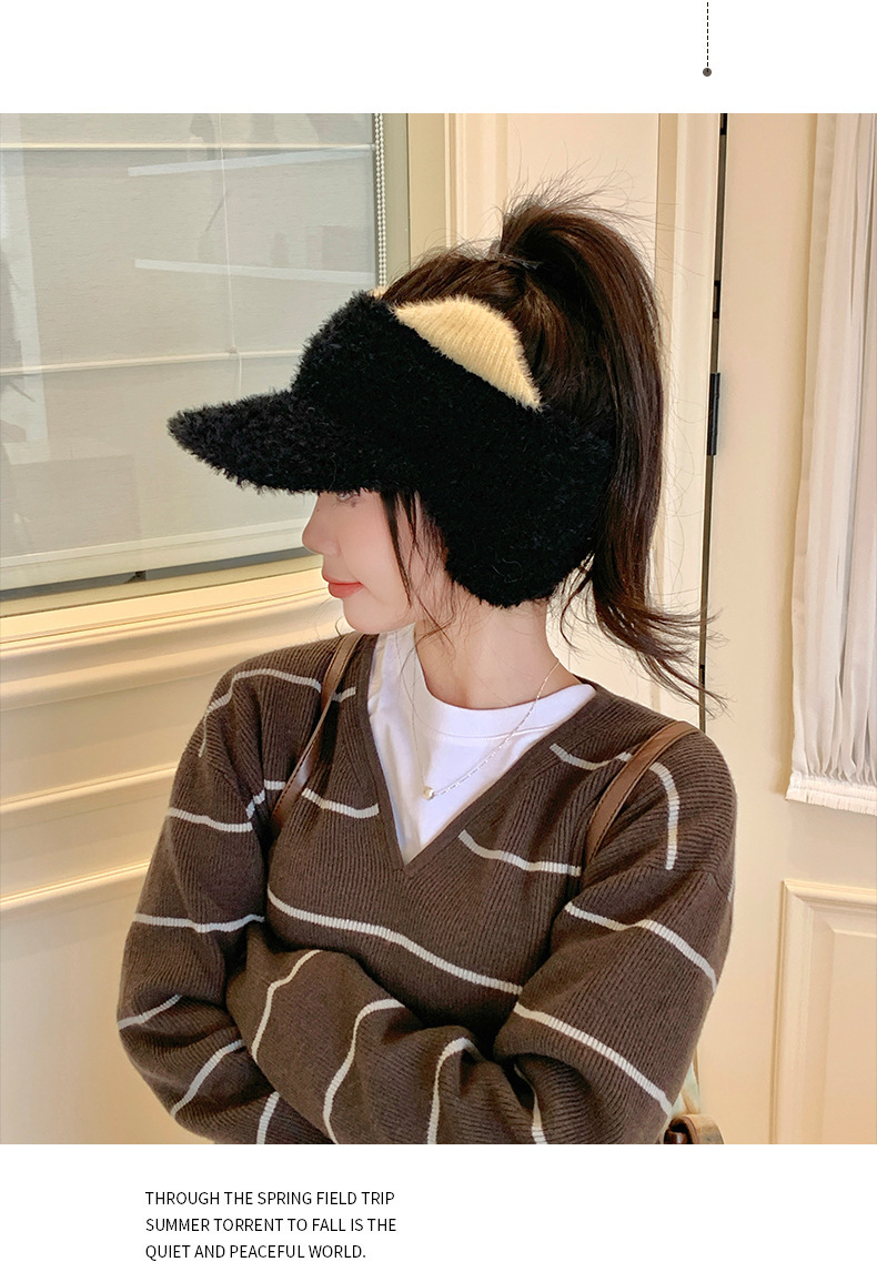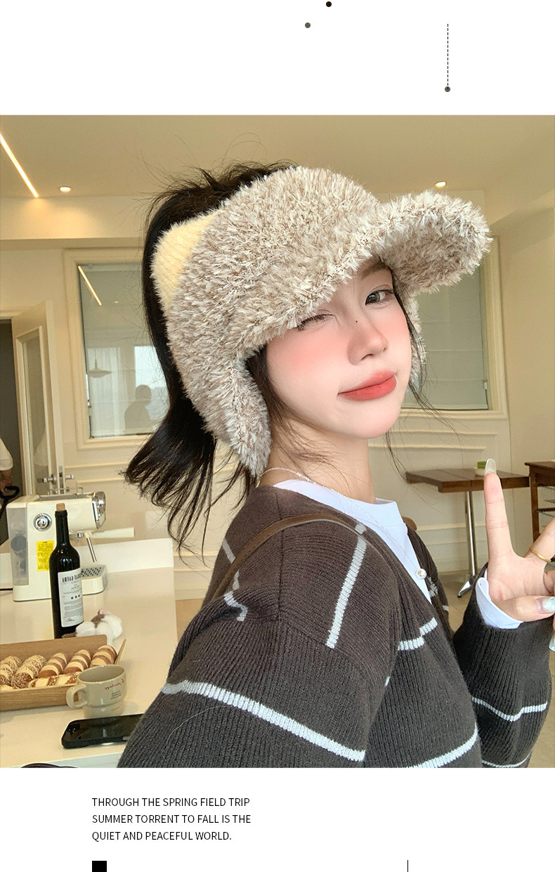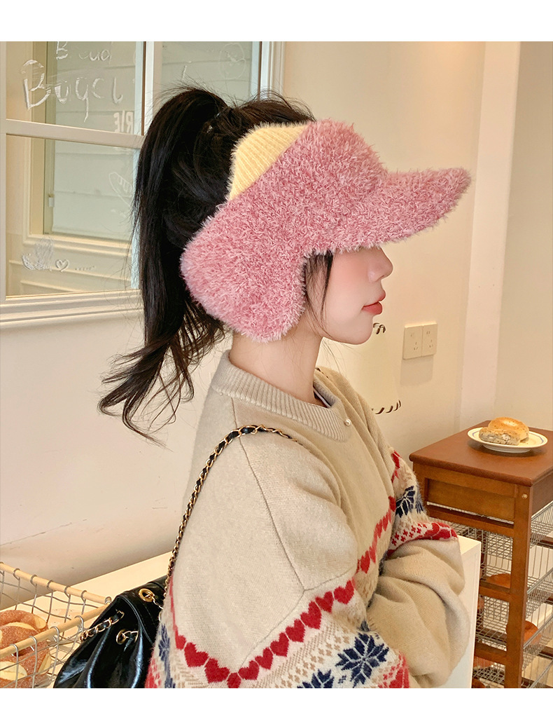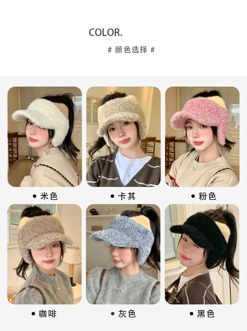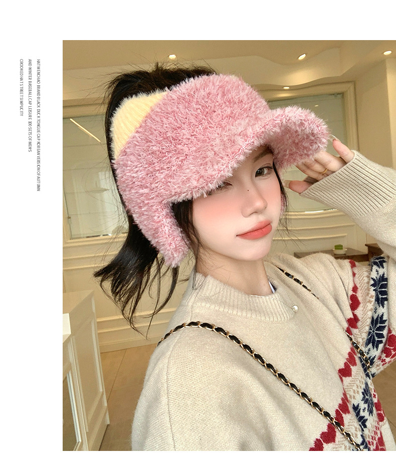 秋冬季韩版鸭舌空顶女帽毛绒空顶帽骑行防寒保暖百搭休闲毛线帽