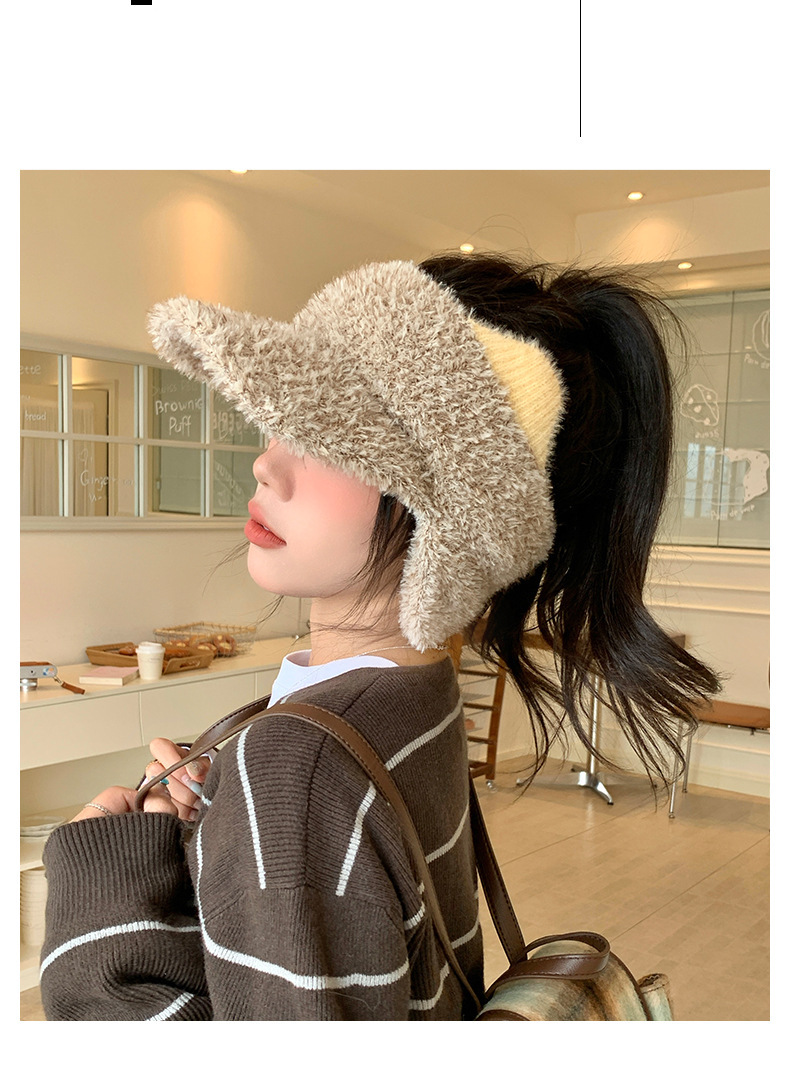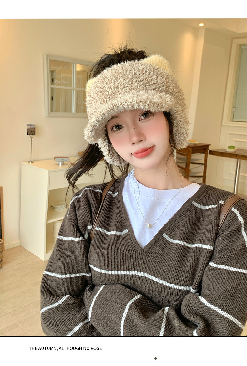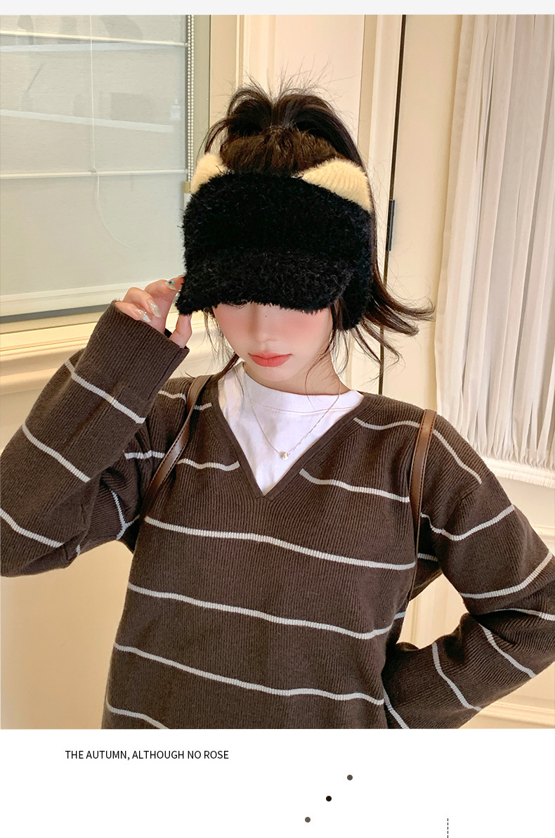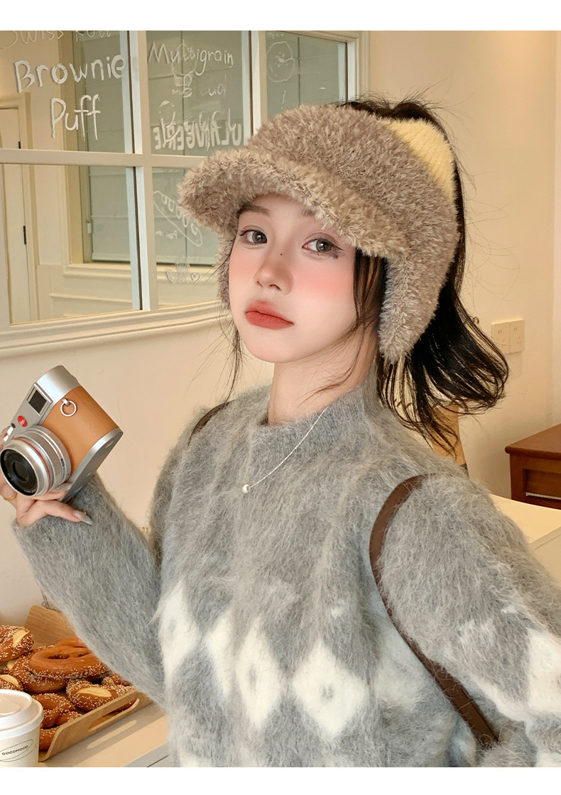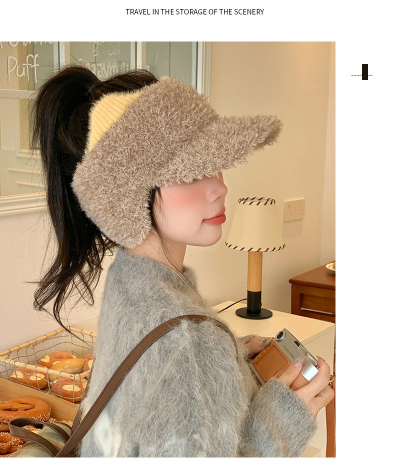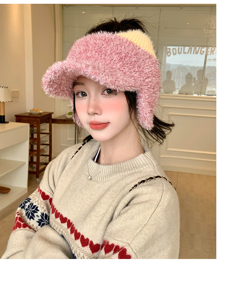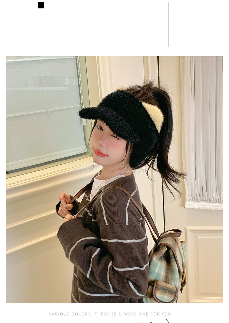 秋冬季韩版鸭舌空顶女帽毛绒空顶帽骑行防寒保暖百搭休闲毛线帽