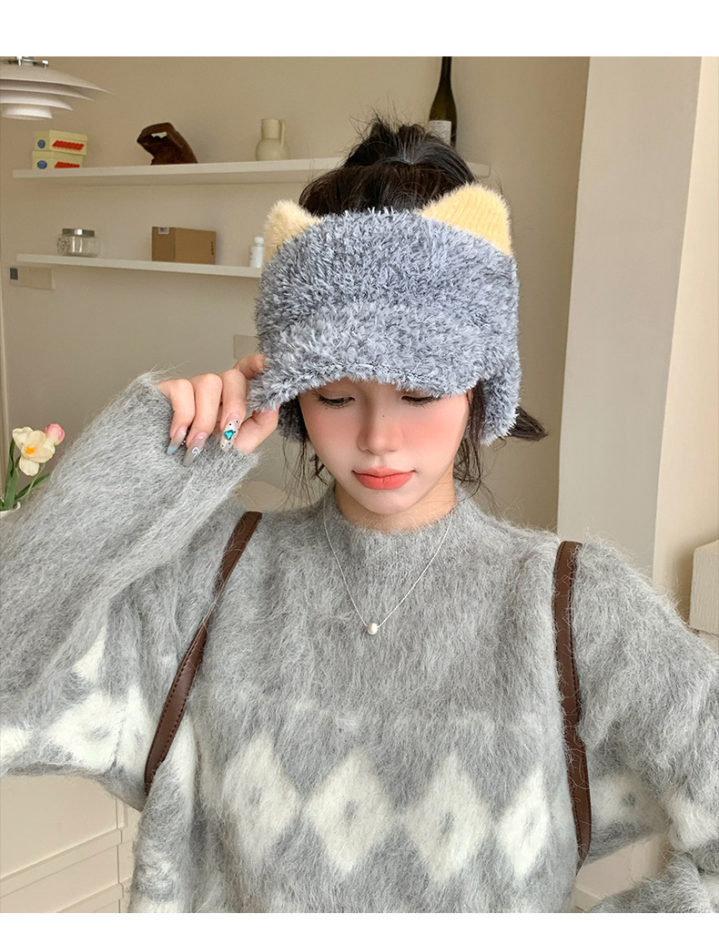 可爱猫咪耳朵毛绒空顶鸭舌帽秋冬季防风护耳帽户外休闲保暖帽子女