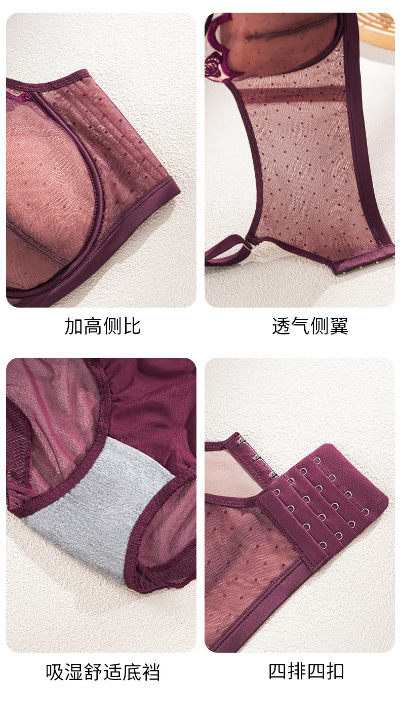 6666高级刺绣内衣轻薄芒果杯记忆钛软钢圈上托防下垂文胸大胸显小