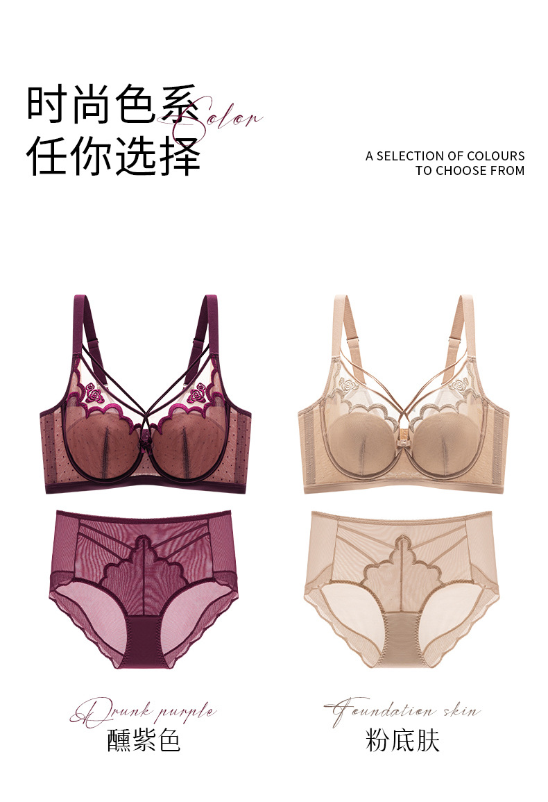 3337 夏薄型下着女性の軽くて通気性のある大きな胸プッシュアップ抗たるみセクシーな中空ブラセット