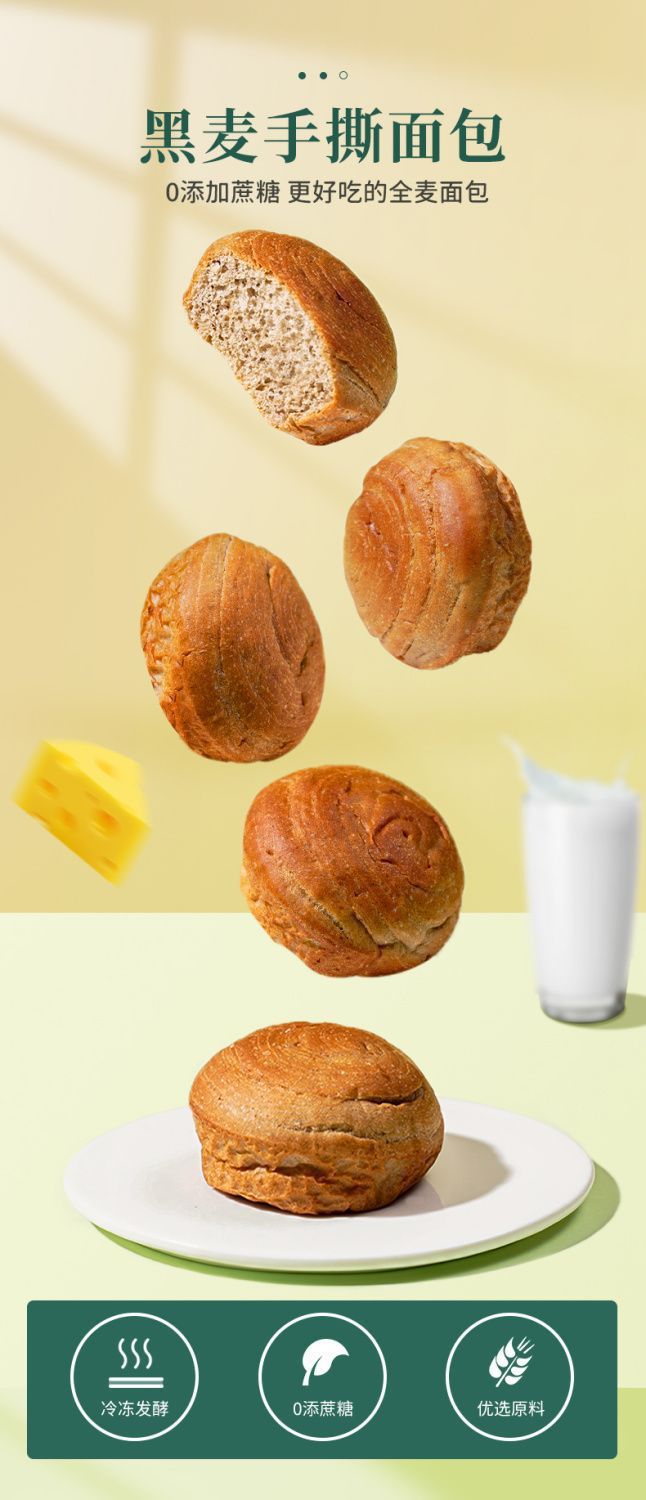 【新鲜】手撕黑麦面包早餐食品糕点心无蔗糖轻食粗粮饱腹代餐批发