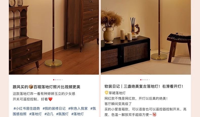 Insクリーム風フロアライトヴィンテージフランス風レトロリビングルームベッドサイドスタンドスタンドネット赤雰囲気ライト