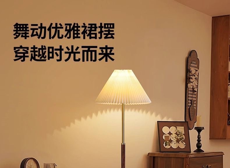 レトロプリーツフロアランプリビングルームハイエンドランプシンプルな寝室書斎装飾雰囲気ジッパーフロアランプ