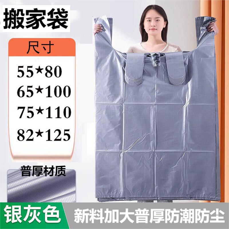 特大サイズのプラスチック袋、シルバーグレーのベスト型、厚手の綿布梱包袋、業務用持ち運び防塵収納移動用袋