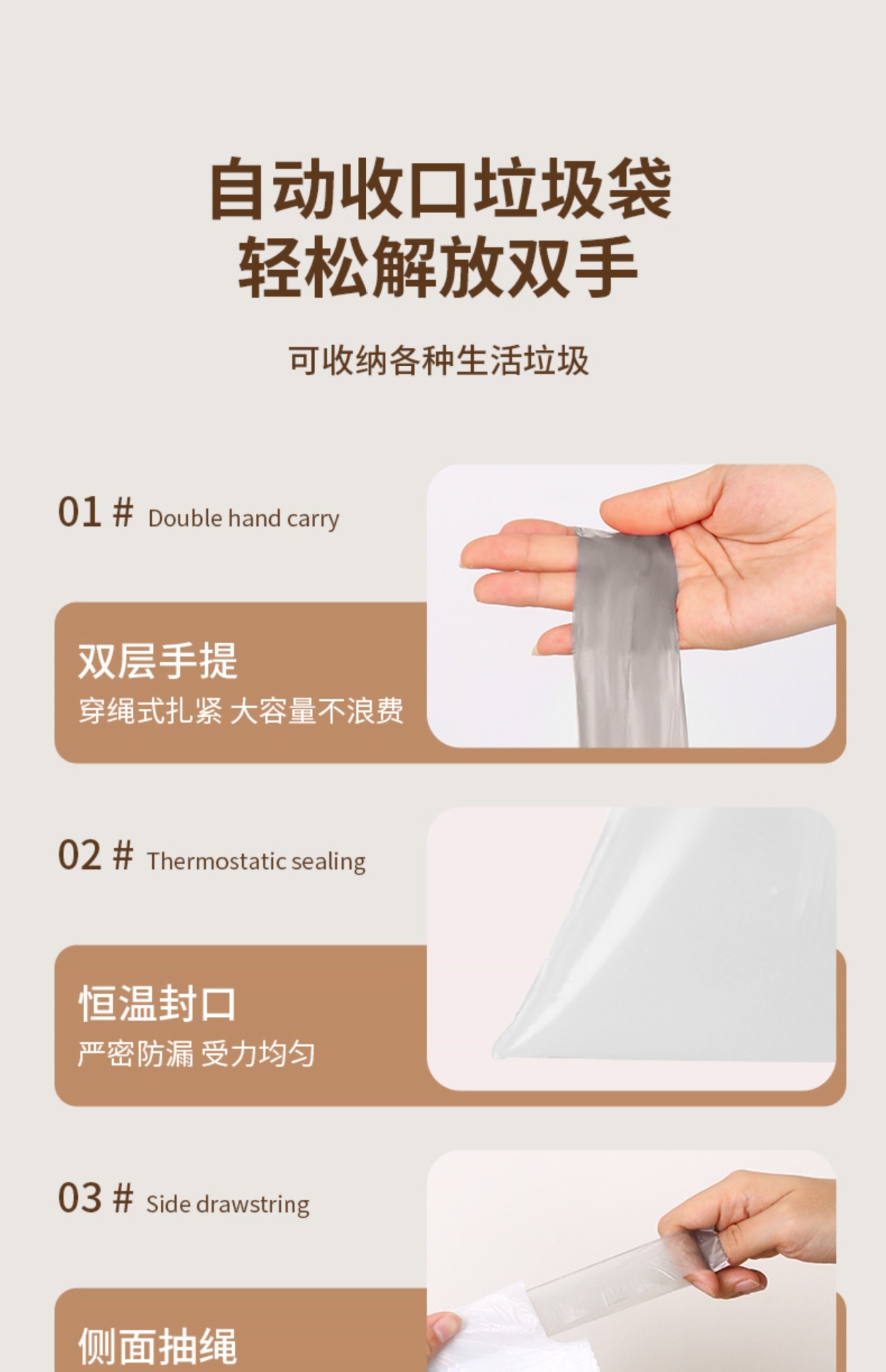 抽绳垃圾袋家用白色手提式厨房加厚自动收口跨境贴标特厚塑料袋子
