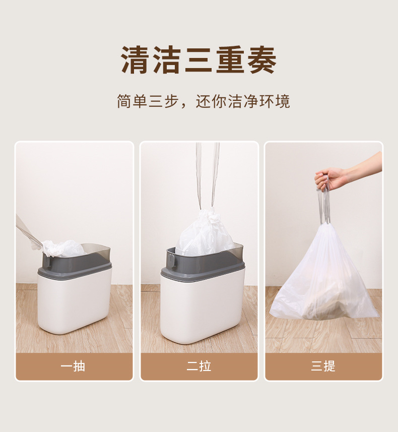 加厚抽绳垃圾袋简约家用手提自动收口特厚实惠装厨房清洁白垃圾袋