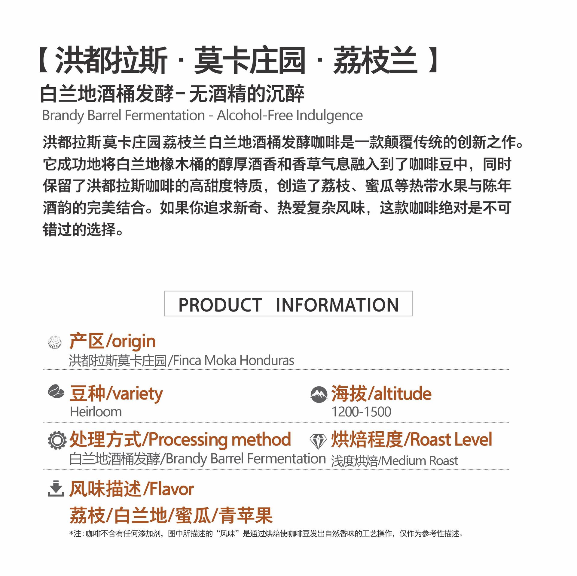 洪都拉斯莫卡庄园荔枝兰白兰地酒桶发酵处理美式咖啡豆浅度烘焙