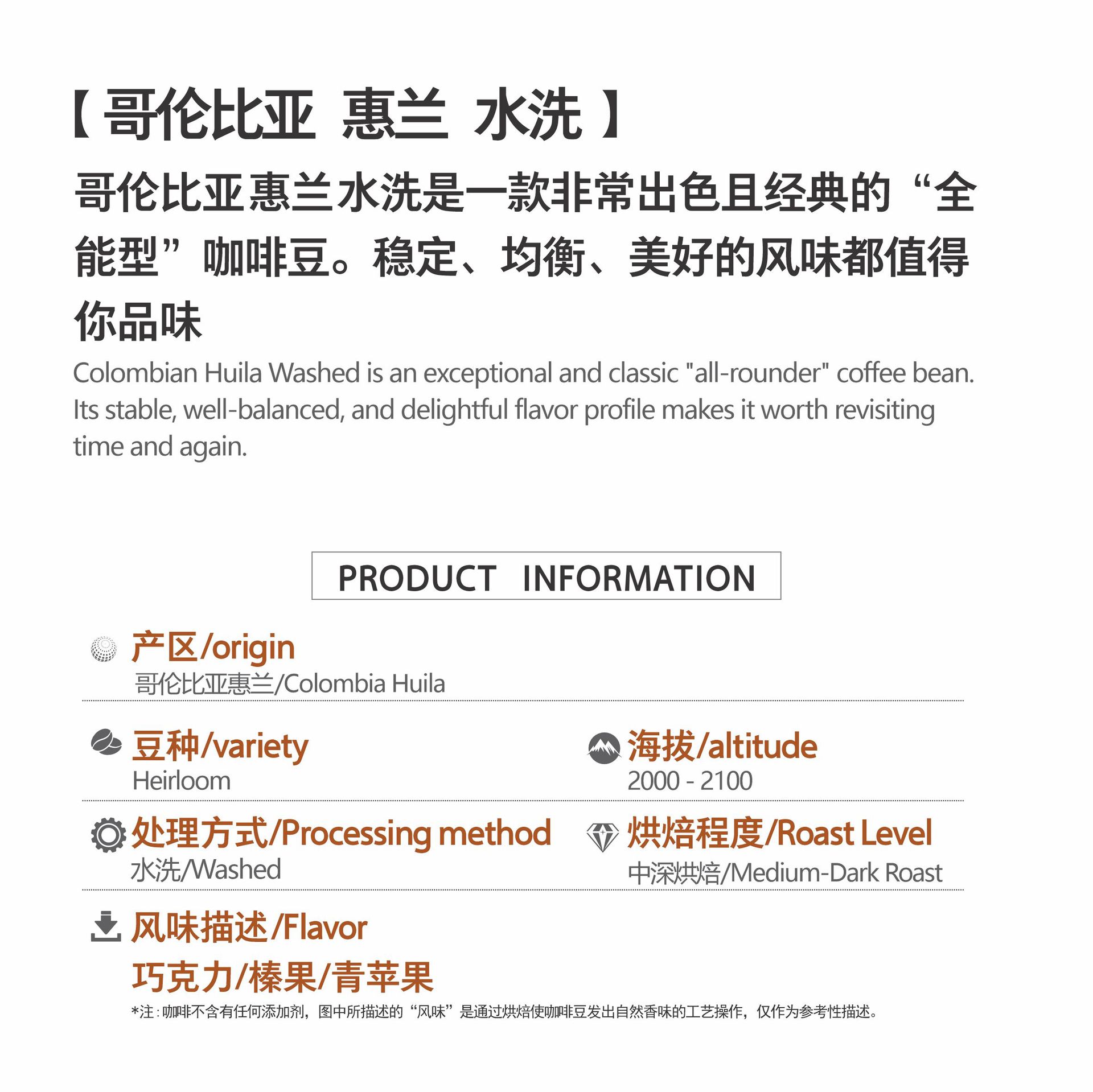哥伦比亚惠兰精品咖啡豆单品中深度烘焙手冲454g醇香水洗
