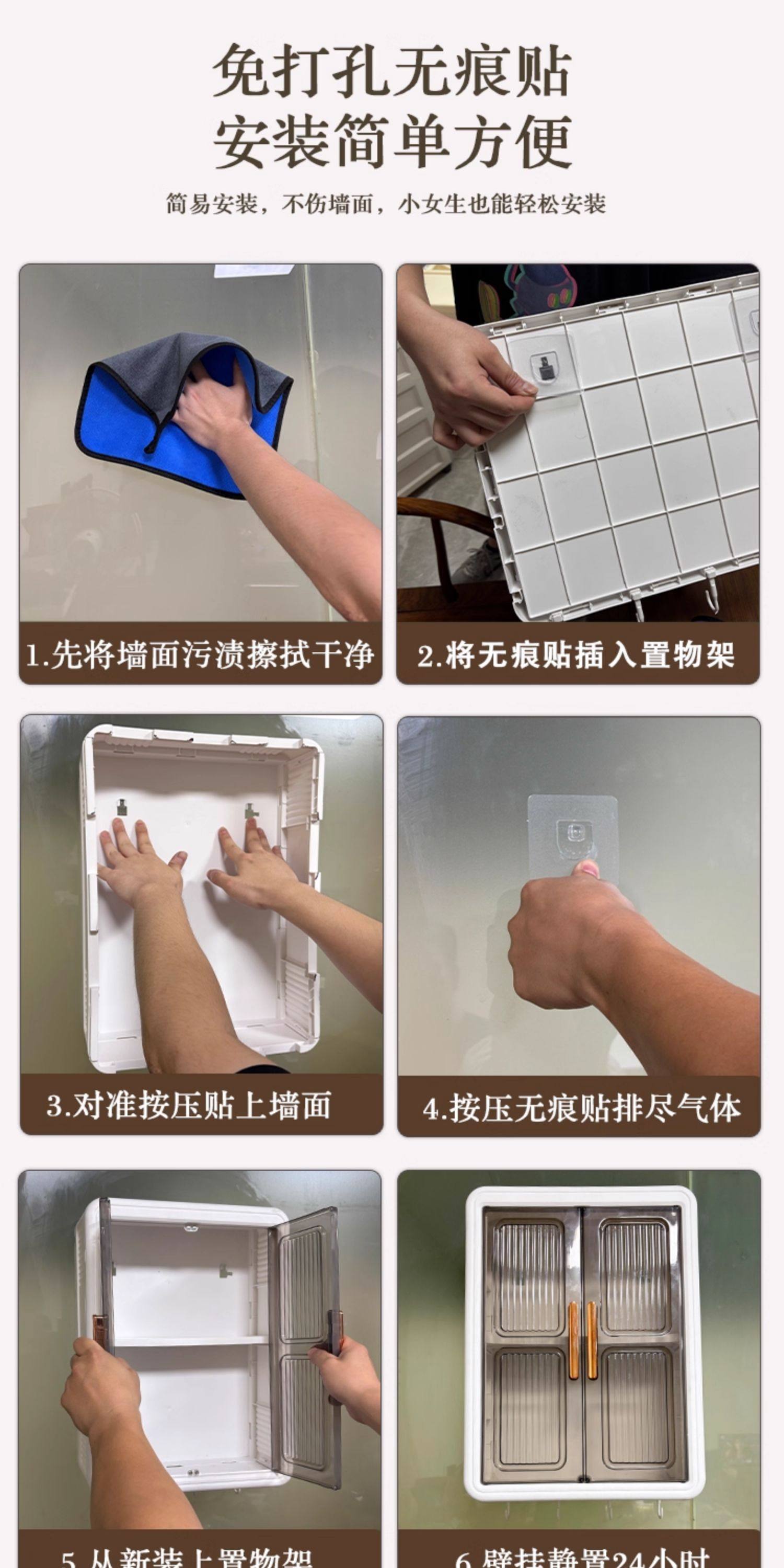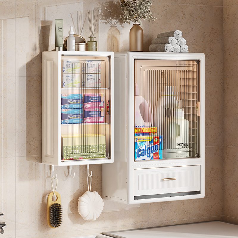 浴室収納キャビネット穴なし壁掛け磁気吸引キャビネット付き防塵収納棚家庭用トイレ壁掛け棚