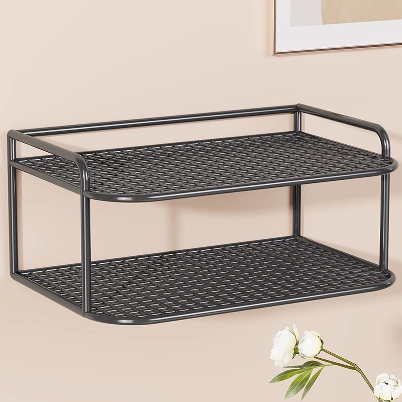 路由器放置架收纳盒免打孔墙上机顶盒置物架壁挂式wifi收纳盒铁艺