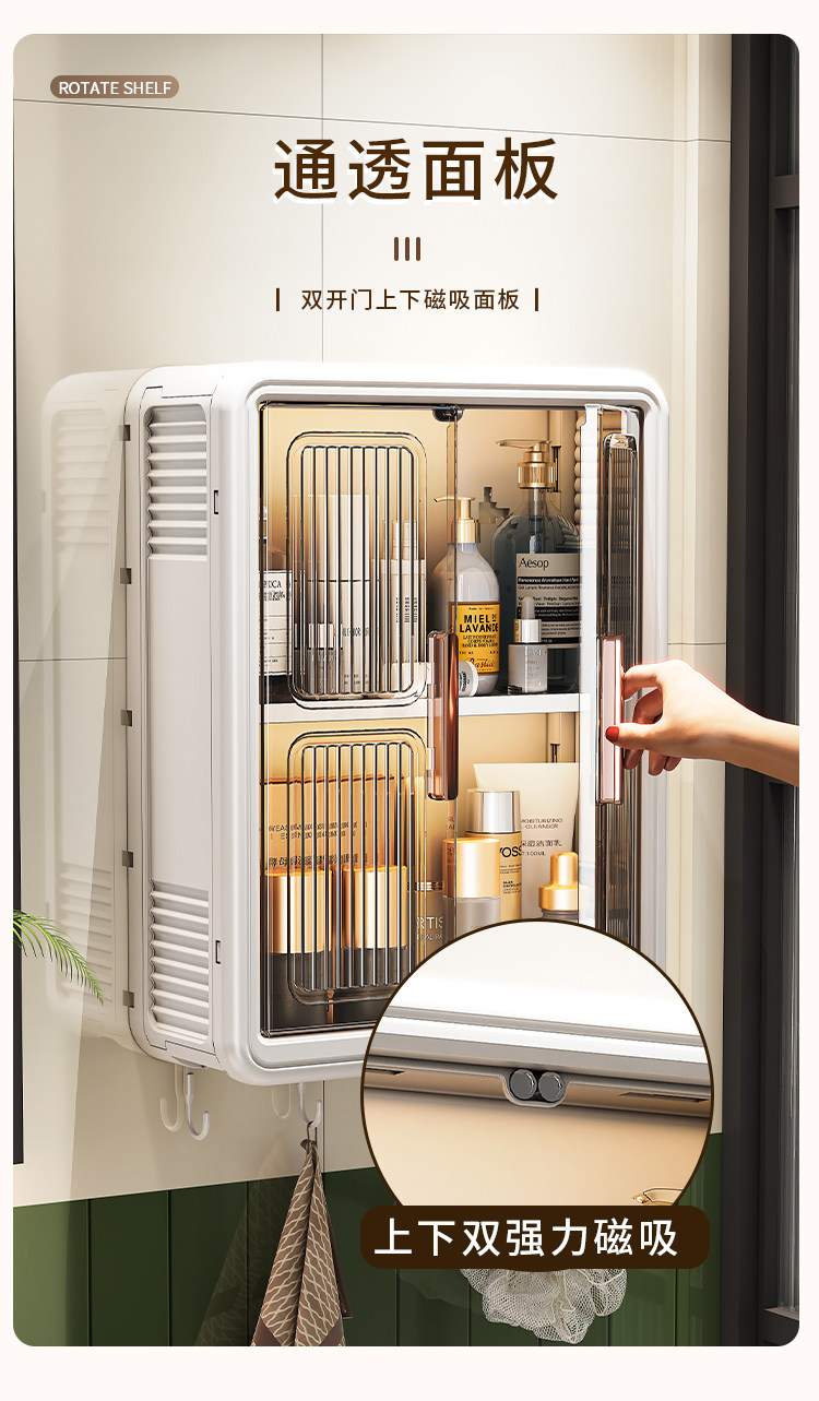 浴室收纳柜免打孔壁挂带磁吸收纳盒子防尘储物架家用卫生间置物架