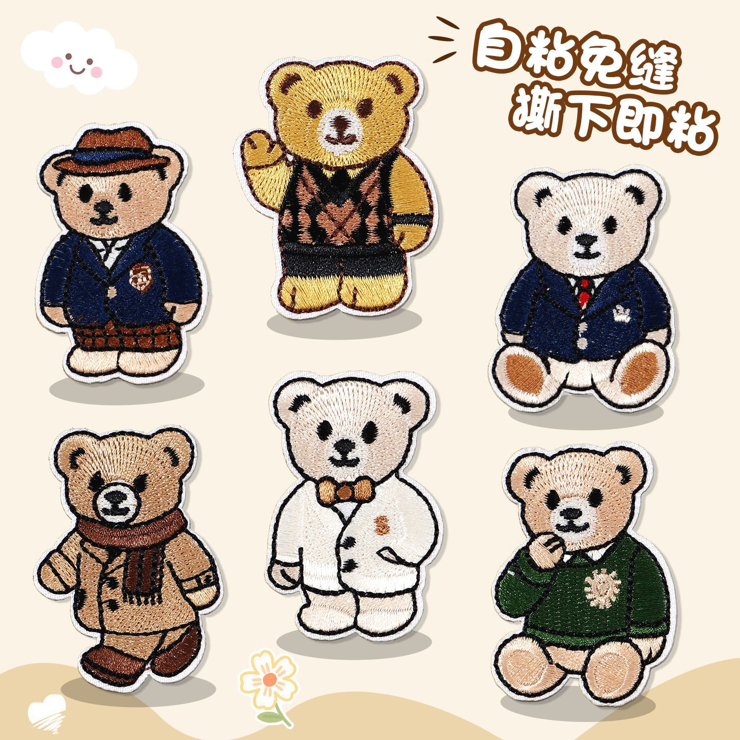 自粘刺绣补丁贴高级感免缝羽绒服衣服裤子无痕款修补装饰小熊布贴