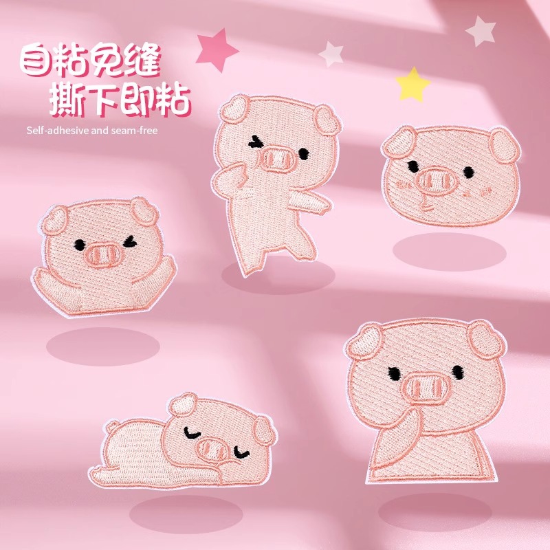 漫画の子豚かわいい刺繍パッチ衣類の穴パッチ自己粘着縫い目なし diy 修理衣類アクセサリー