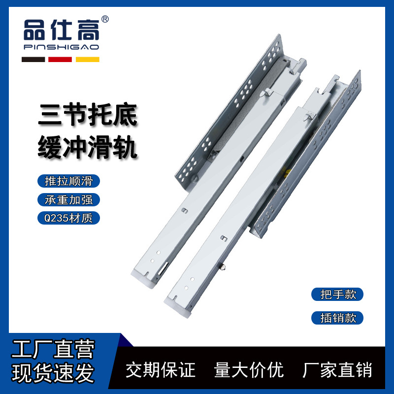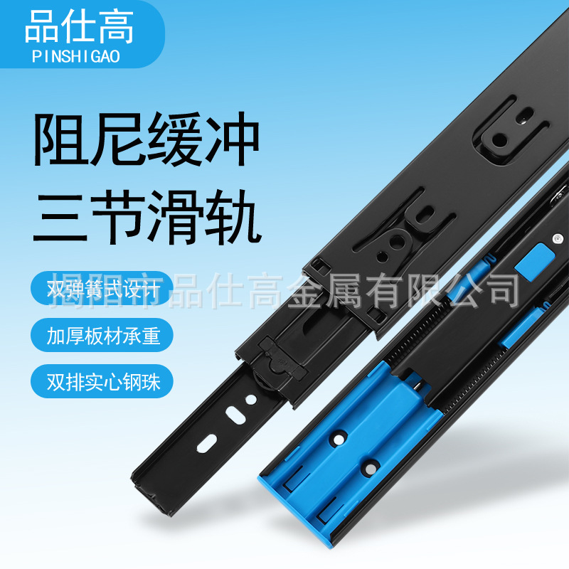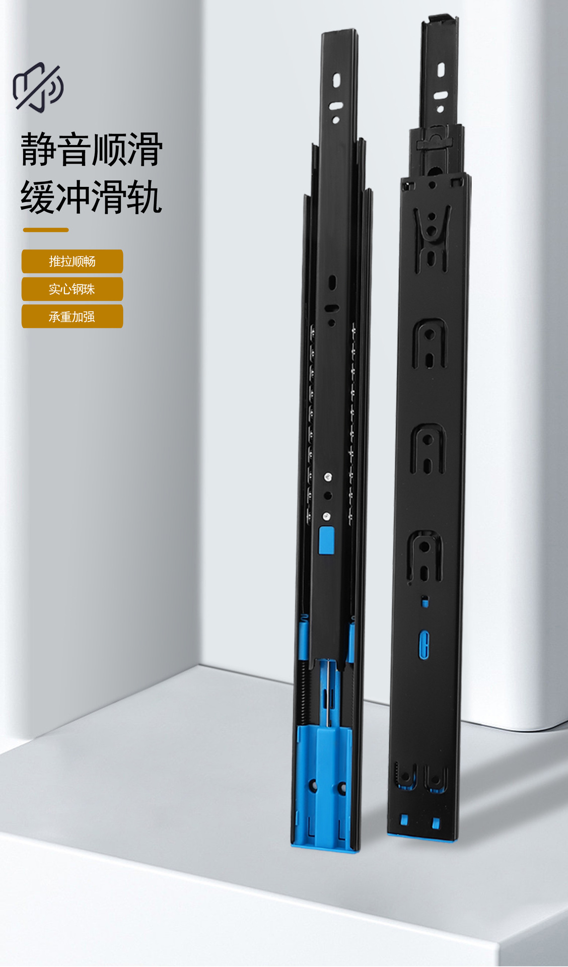 反弹3三节轨静音液压加厚抽屉轨道家用橱柜缓冲滑轨衣柜钢珠导轨