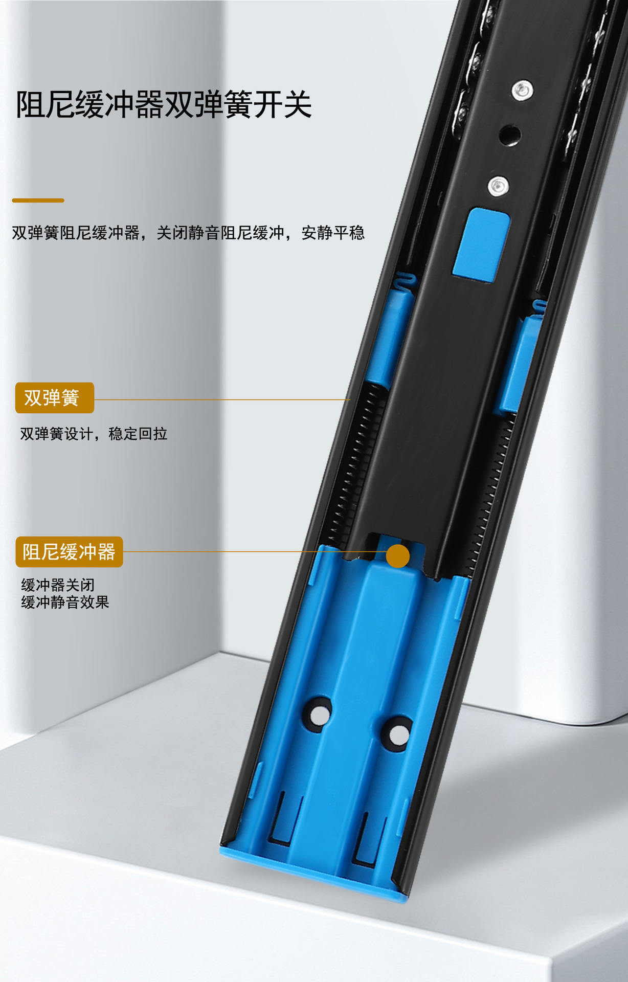 4512双弹簧缓冲滑轨 三节钢珠阻尼轨道 抽屉轨道家具橱柜导轨滑轨