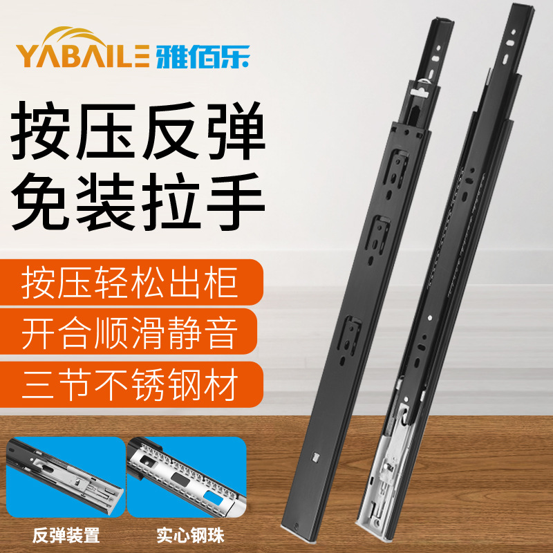 三節静音押し引きリバウンド引き出しスライドレール服食器棚ダンピングレール取っ手なしボールレール金具部品