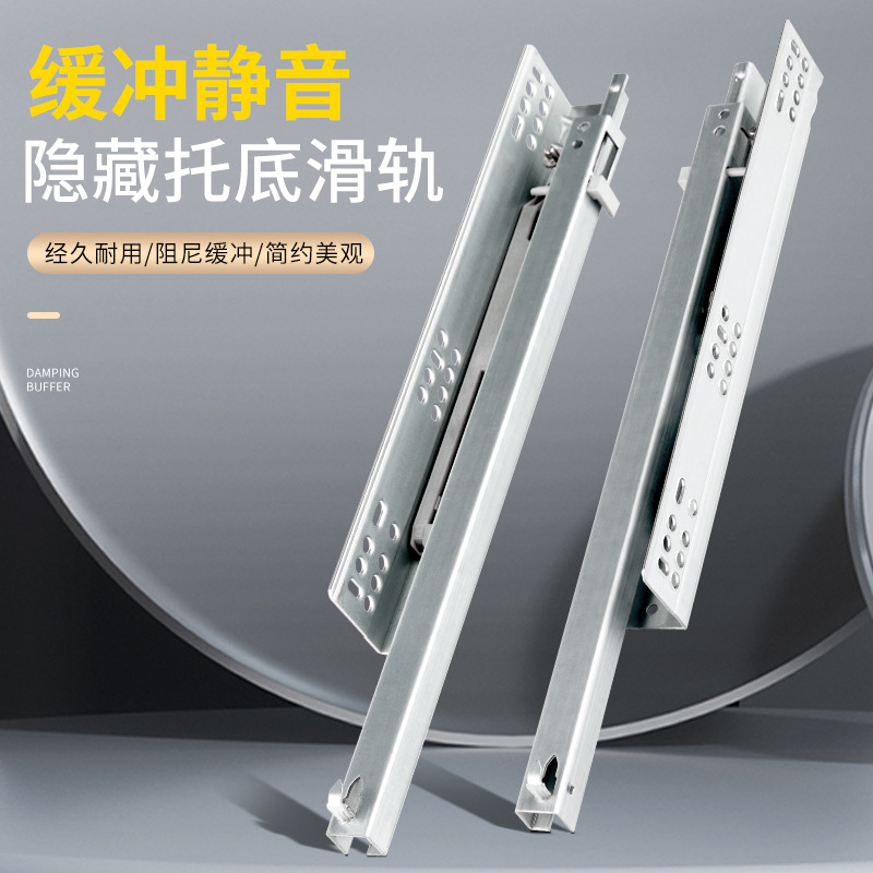 隠しレール2段式ダンピングスライド、引き出し底面取り付けレール、静音キャビネット家具工場