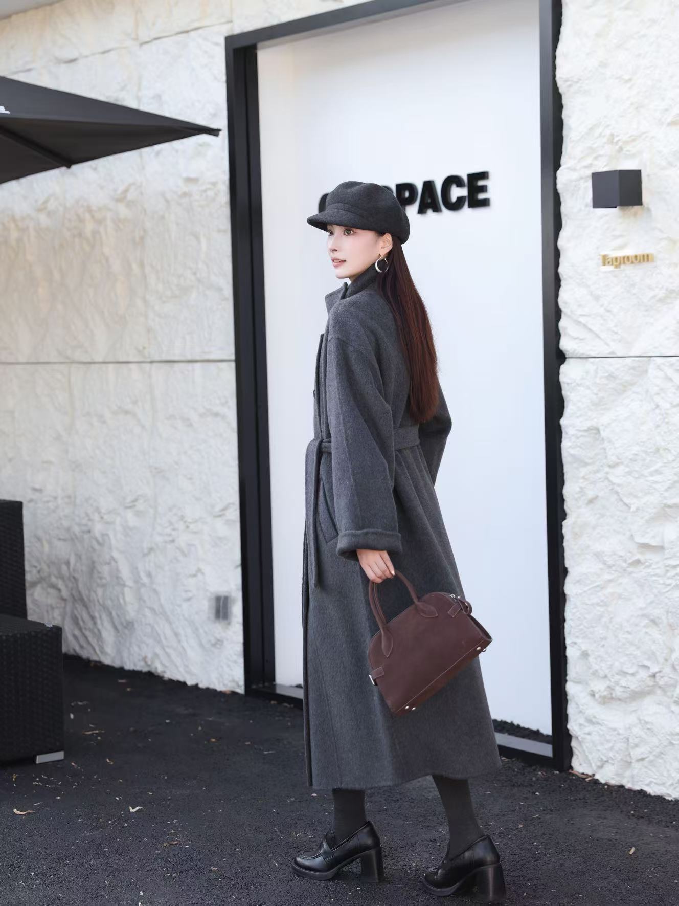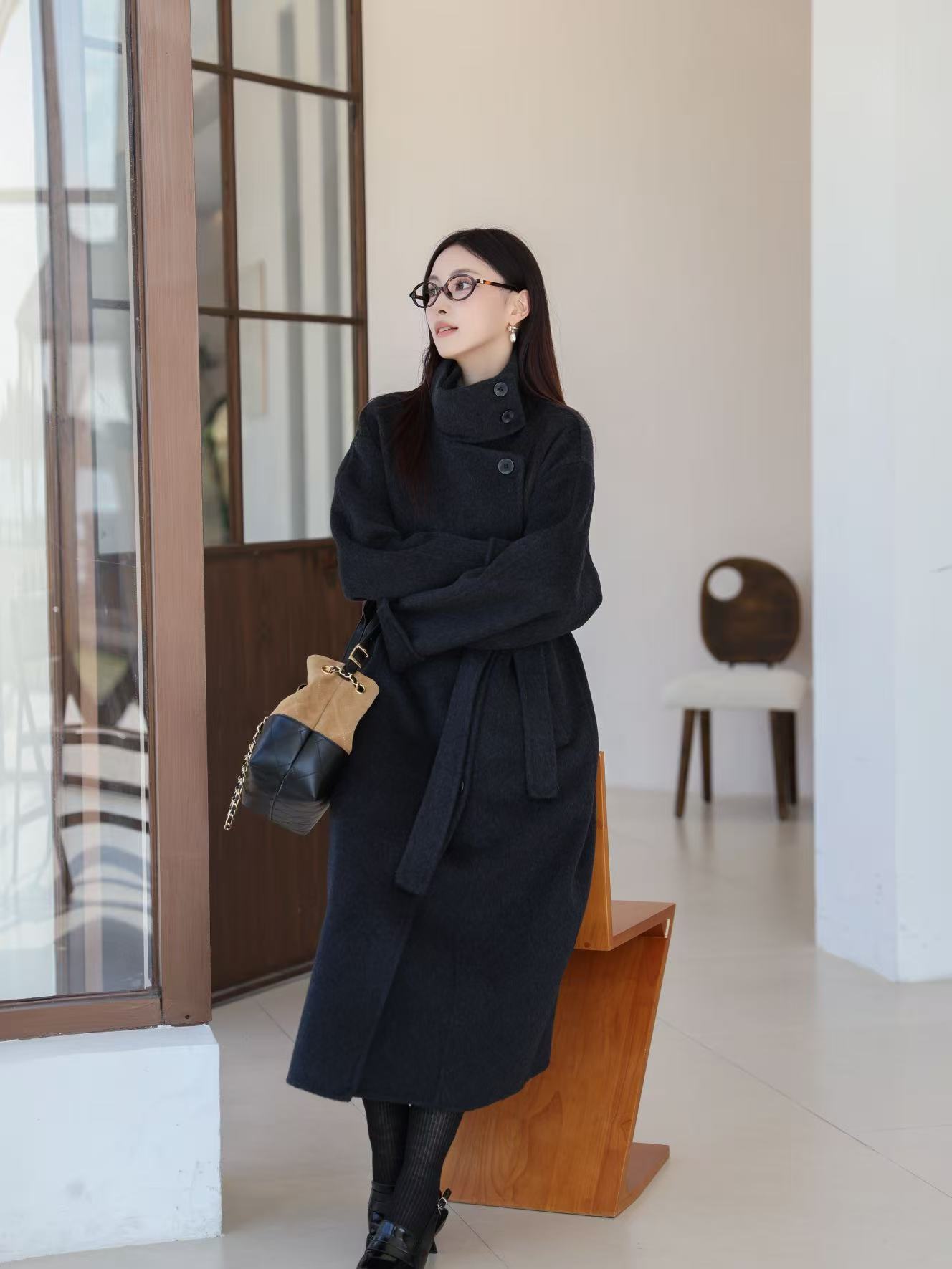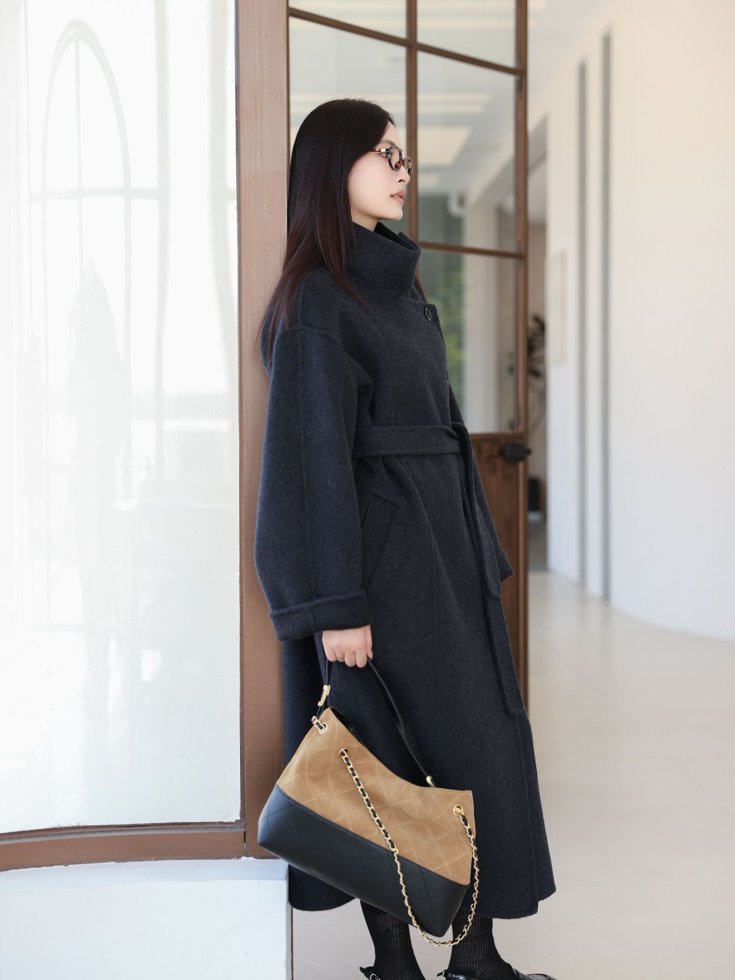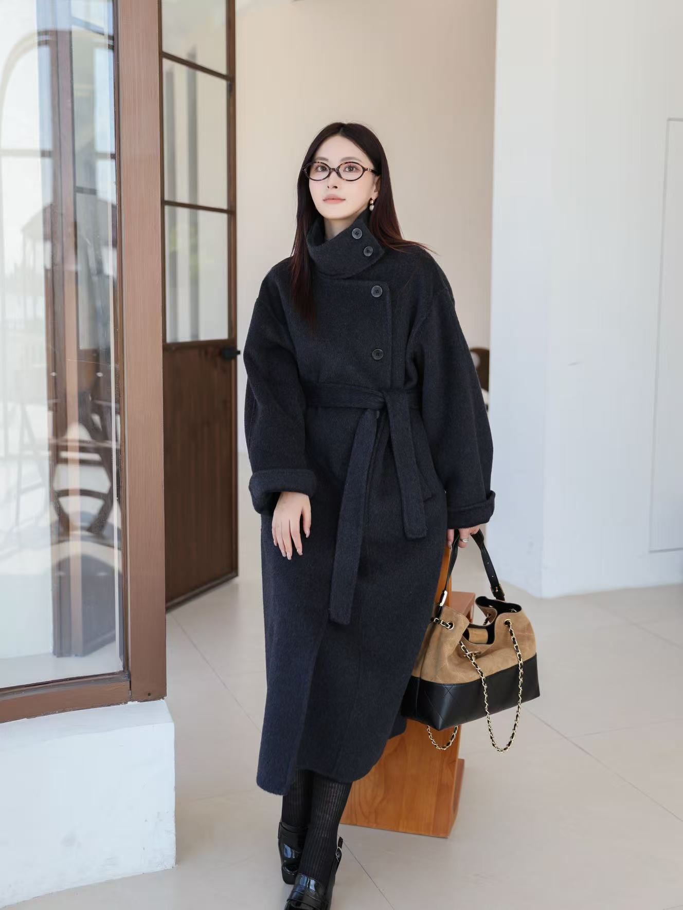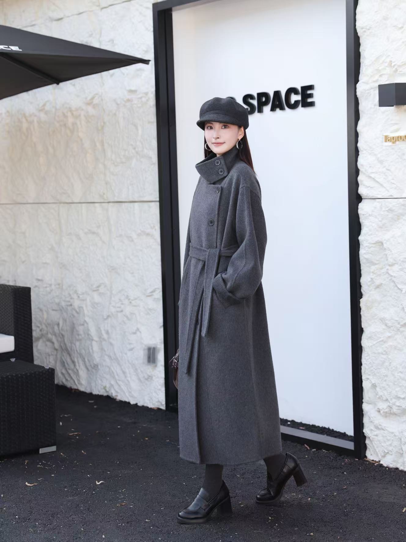 重磅经典立领大衣新款双面羊毛大衣气质高级宽松腰带毛呢外套女冬