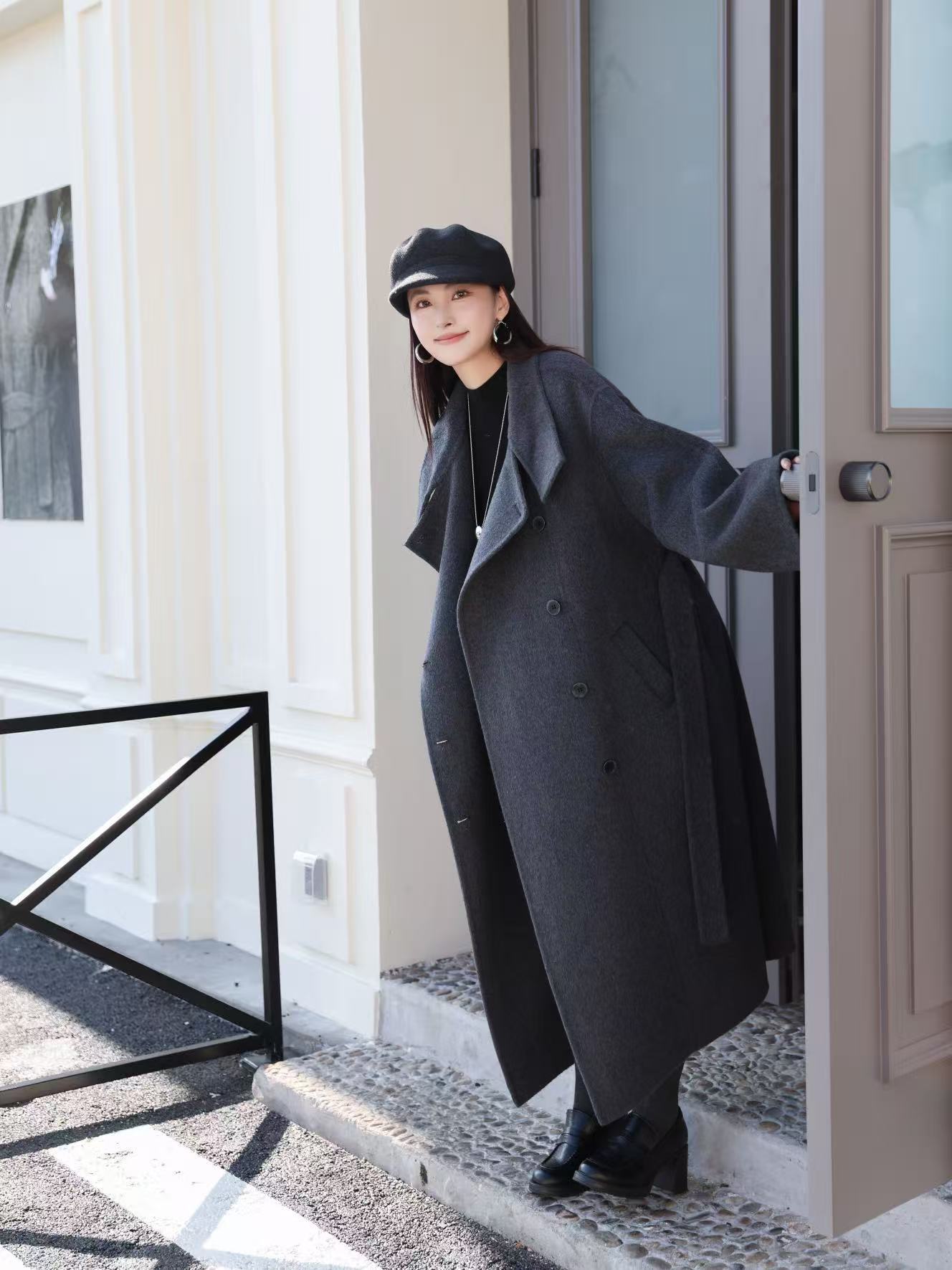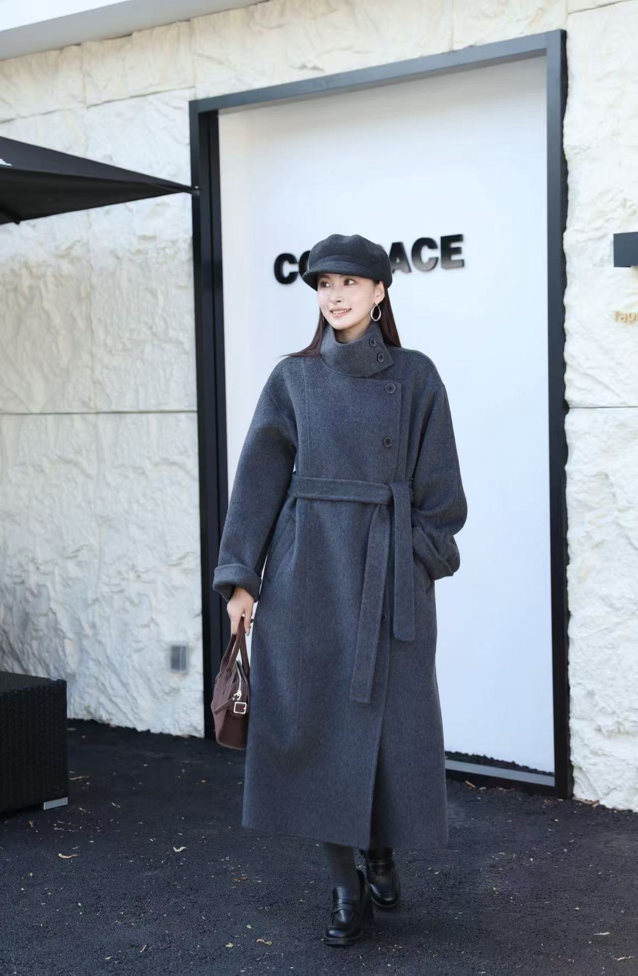 MM2980人生大衣明星同款双面100羊毛大衣戗驳领经典浴袍外套女冬