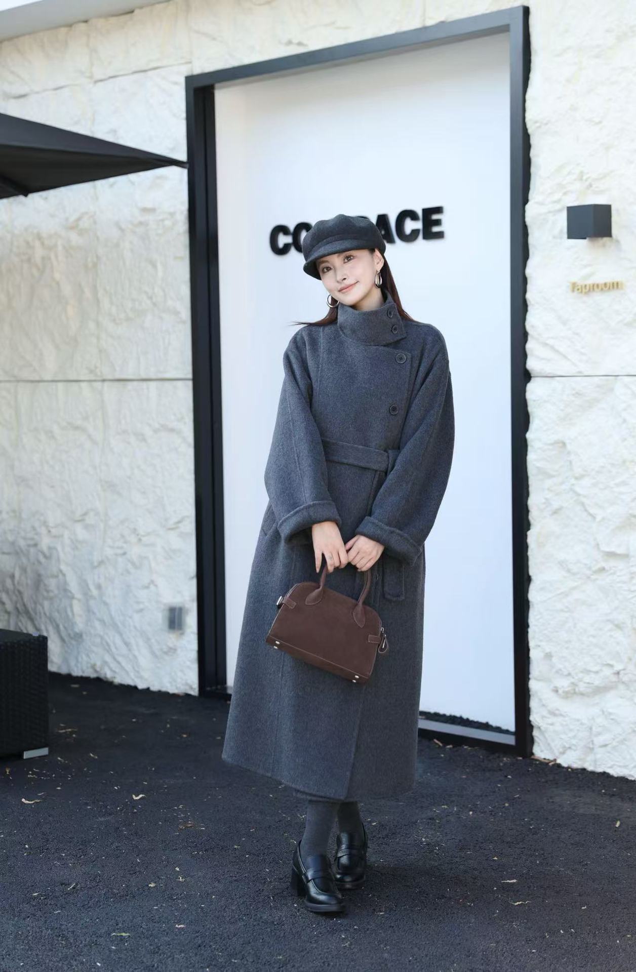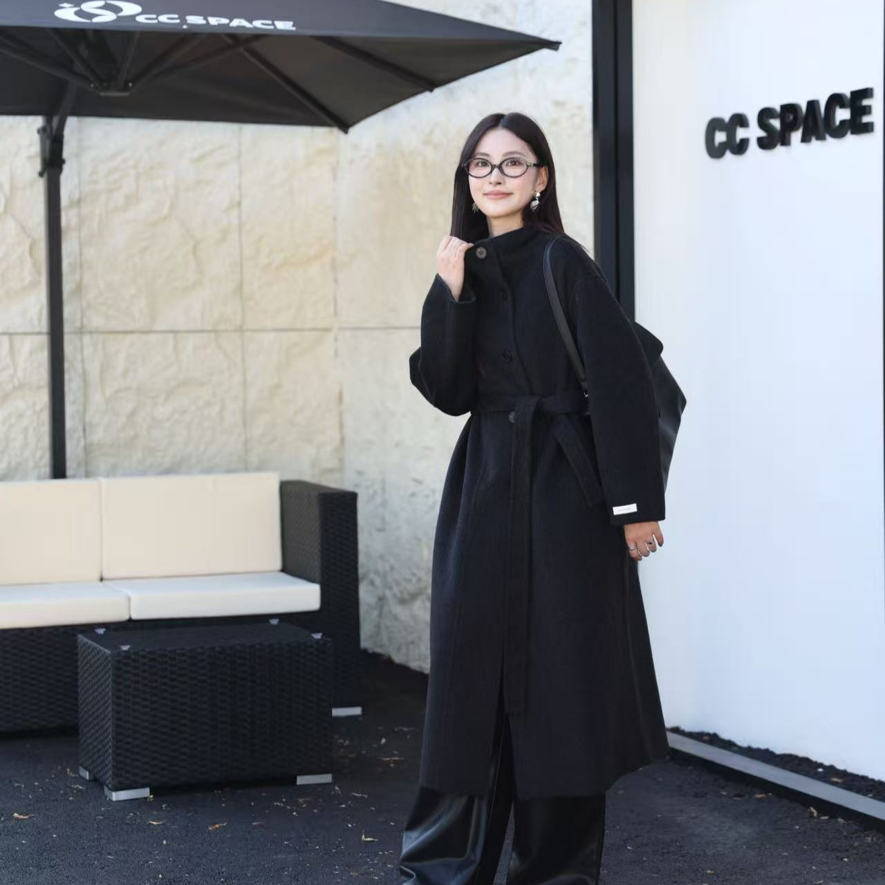 高級感百合両面ウールコート立襟コート女性2024秋冬新作保温帯デザイナーモデル