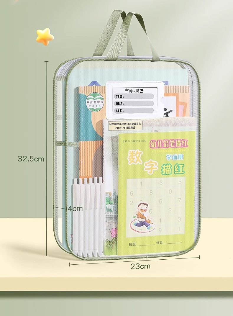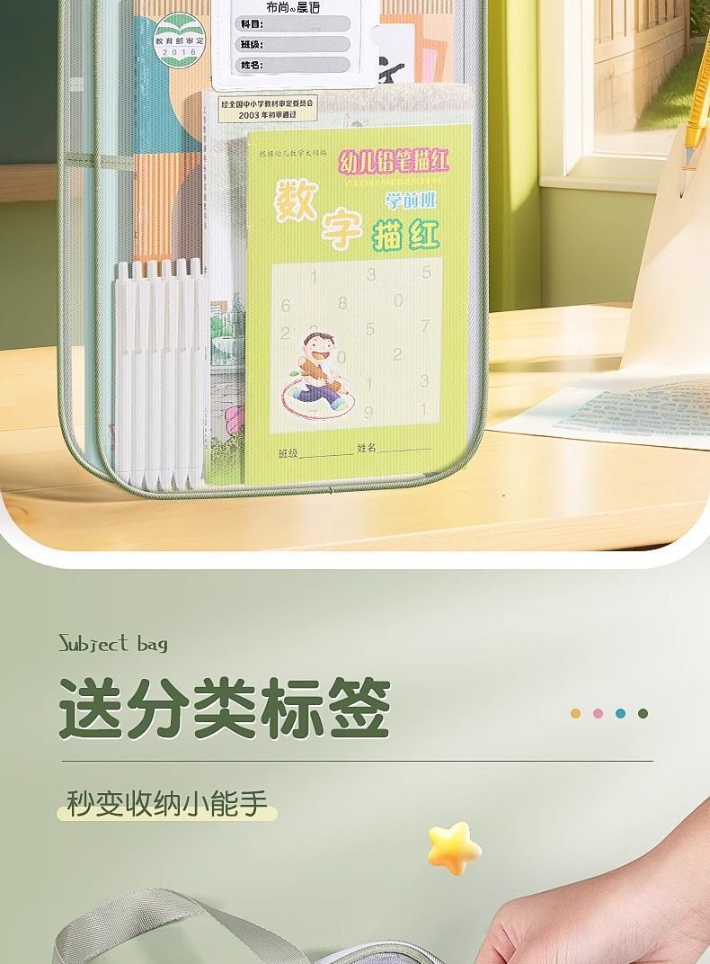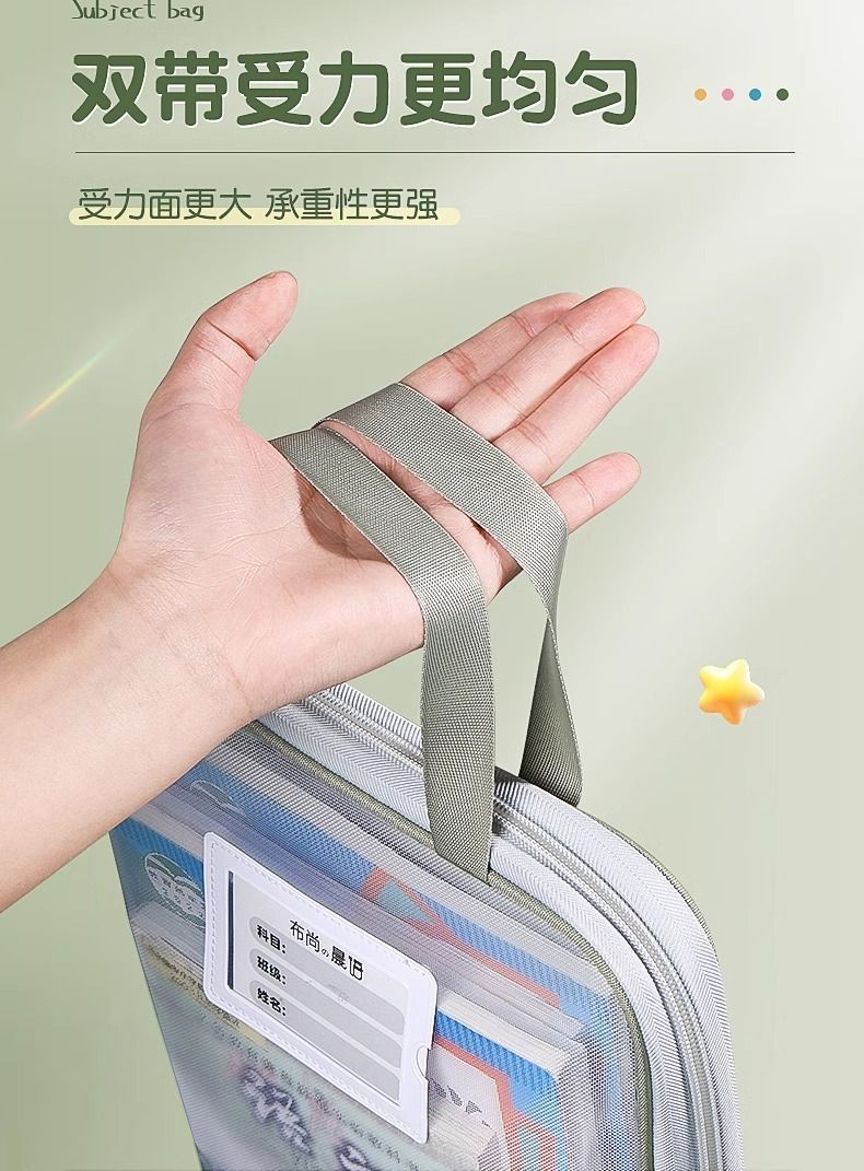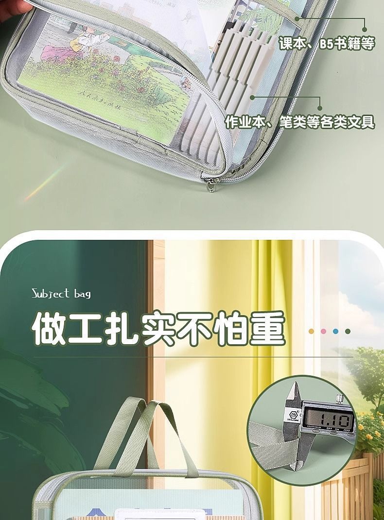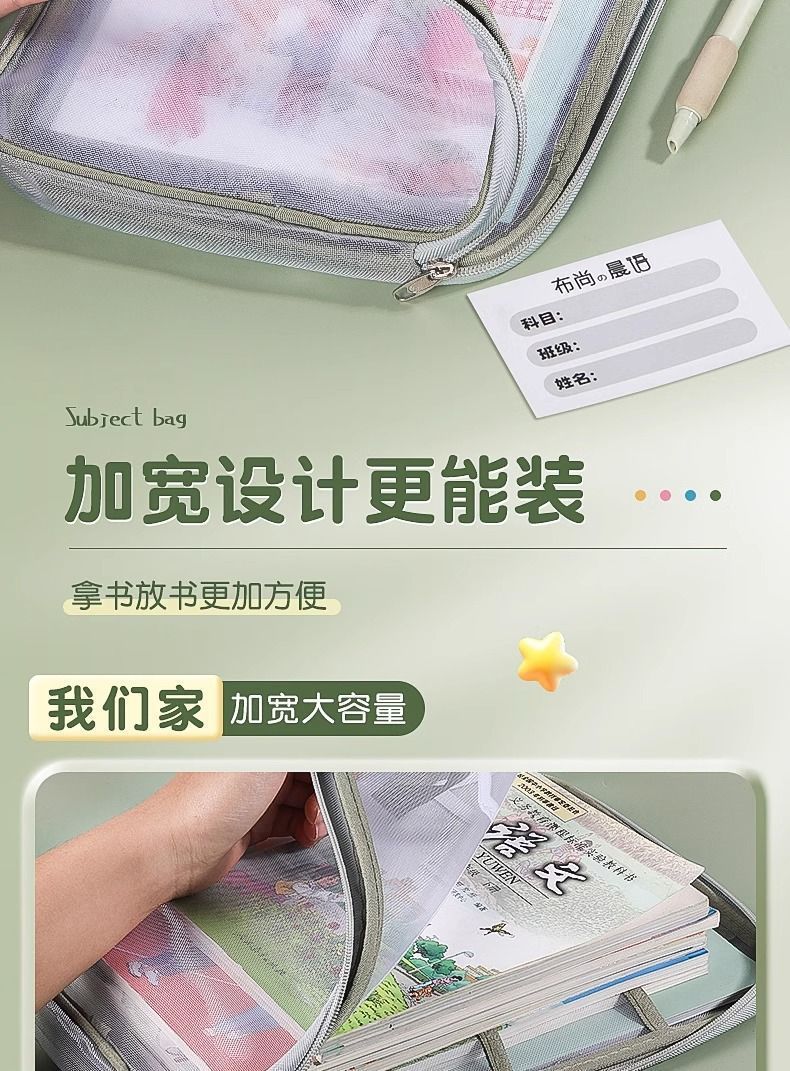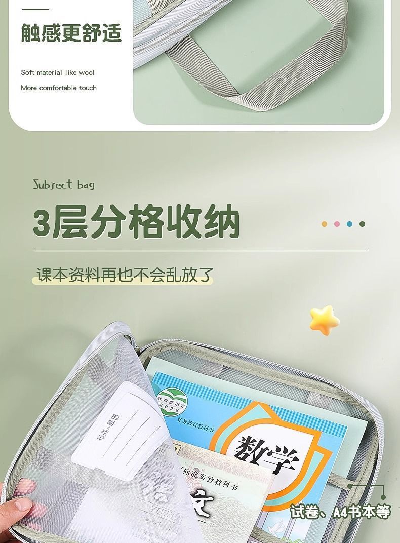 小学生手提书本袋加厚科目A4分类多层网纱文件袋大容量拎书袋批发