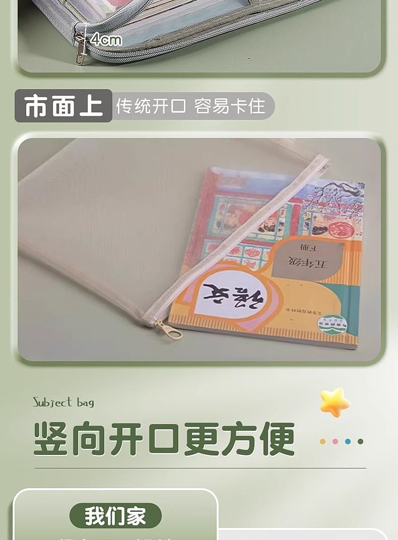 L型科目袋学科分类袋透明网纱文件袋拉链式大开口学生考试手提袋