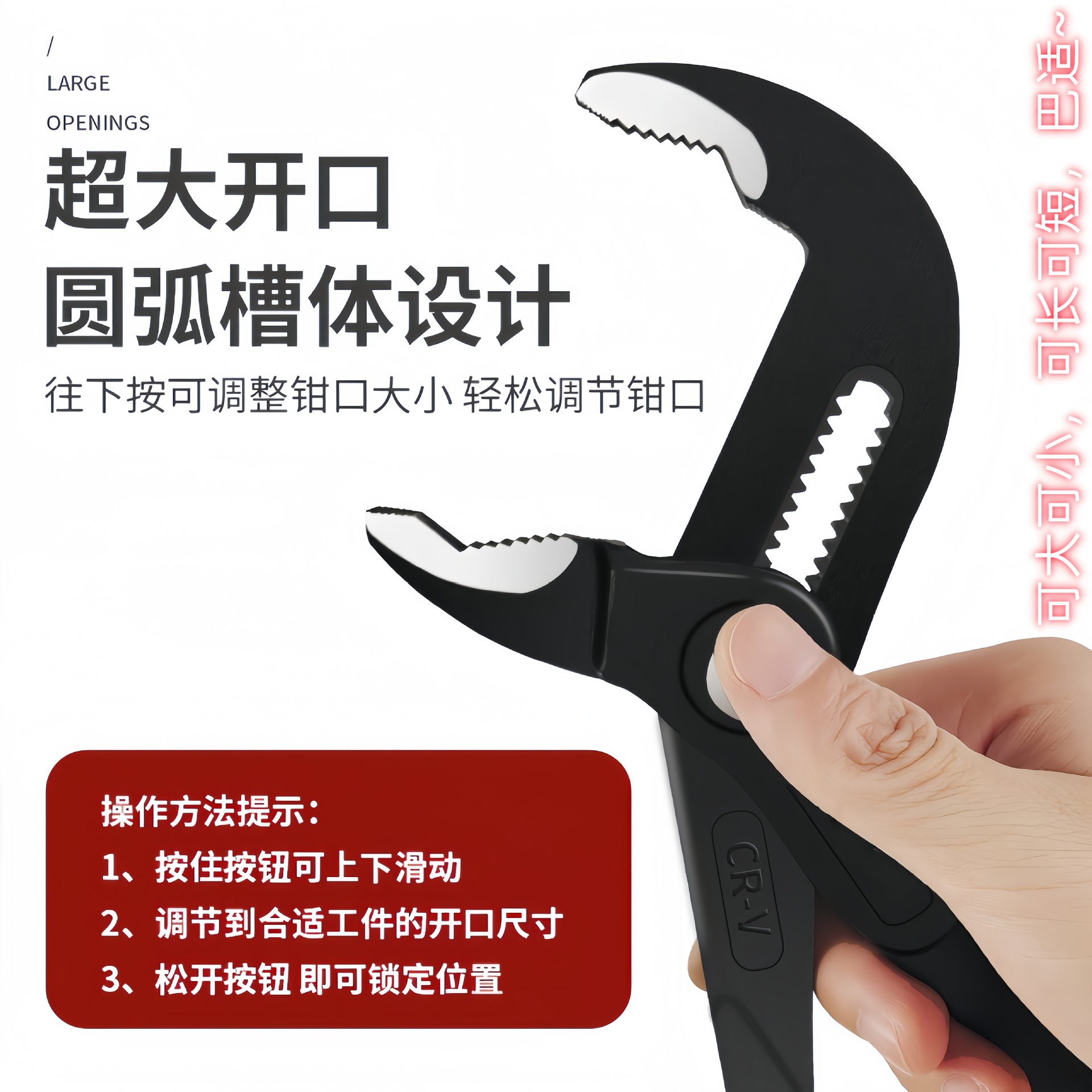 新款多功能水泵钳万能扳手快速水管钳按压夹持大开口水暖家用工具
