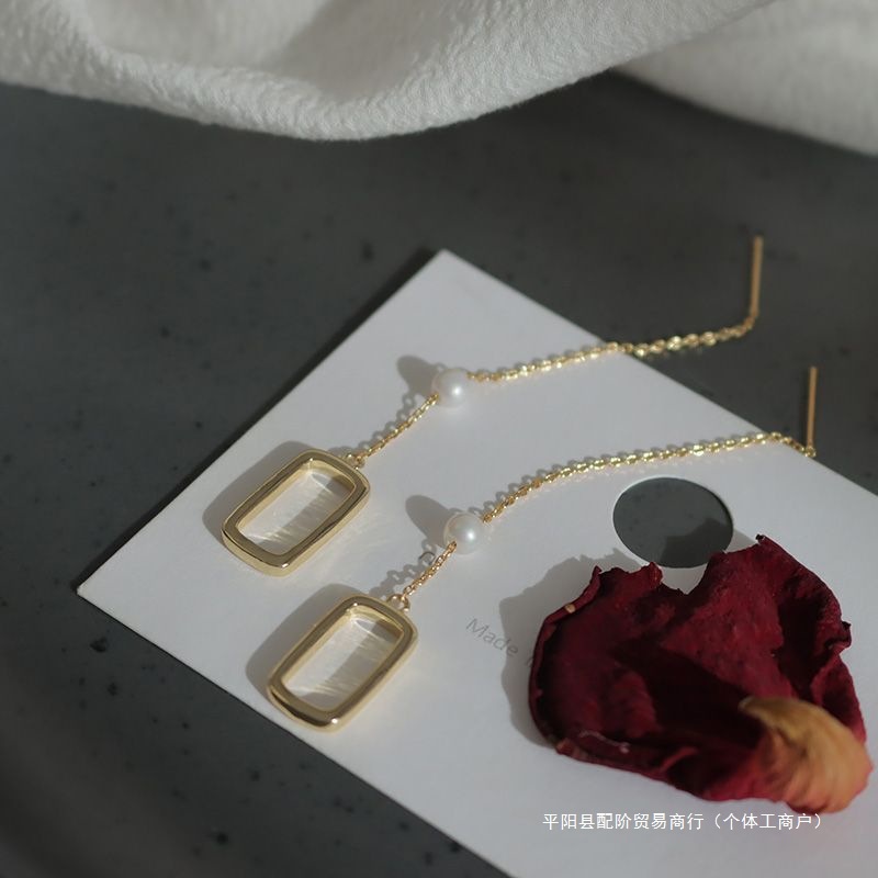 パールタッセルイヤリングスクエアイヤリング女性用 2023 新しい多用途ニッチデザインイヤリングヘップバーンスタイル