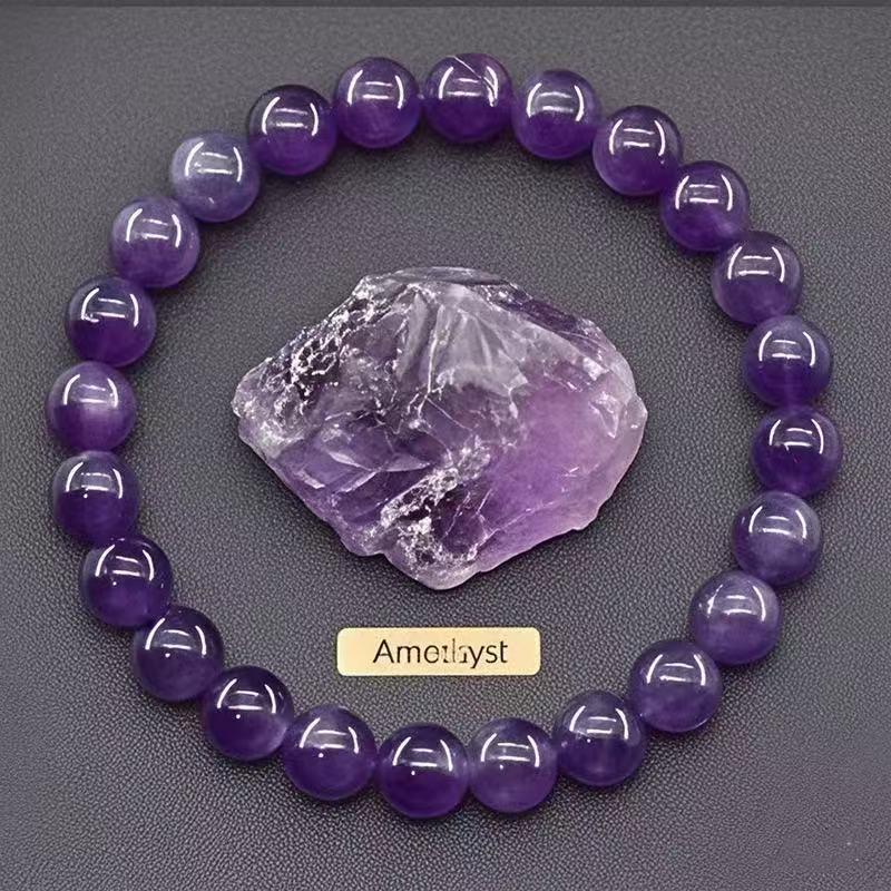 Temu希音tk跨境爆款手链8mm天然紫水晶虎眼石青金石工厂批发